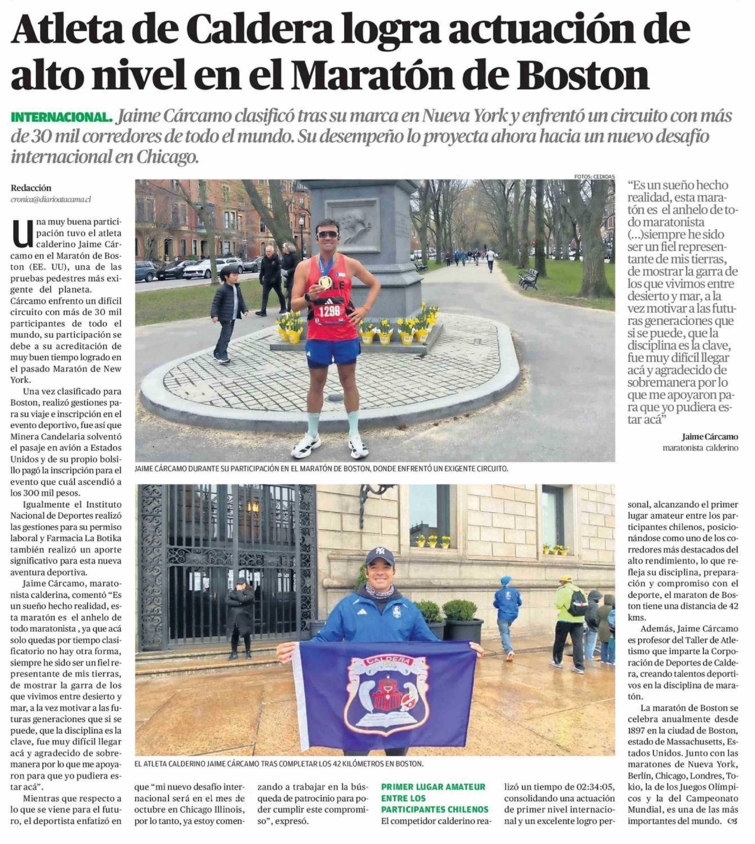 Atleta de Caldera logra actuación de alto nivel en el Maratón de Boston 22-04-2026 El Diario de Atacama |