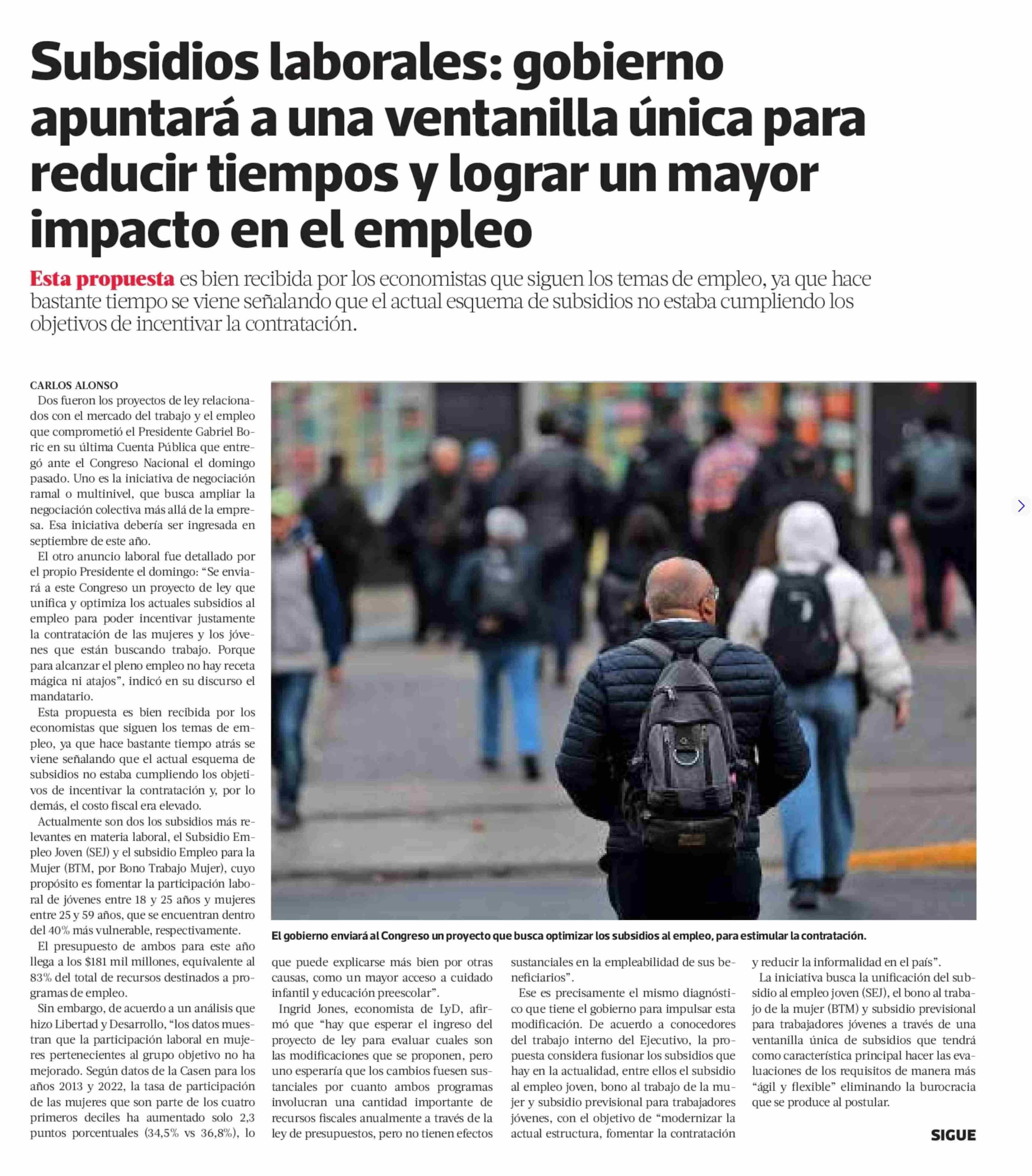 Subsidios laborales: gobierno apuntará a una ventanilla única para reducir tiempos y lograr un mayor impacto en el empleo 04-06-2025 La Tercera |