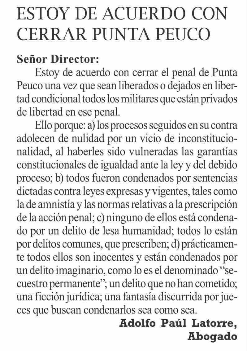 | Título: | CARTAS: ESTOY DE ACUERDO CON CERRAR PUNTA PEUCO |