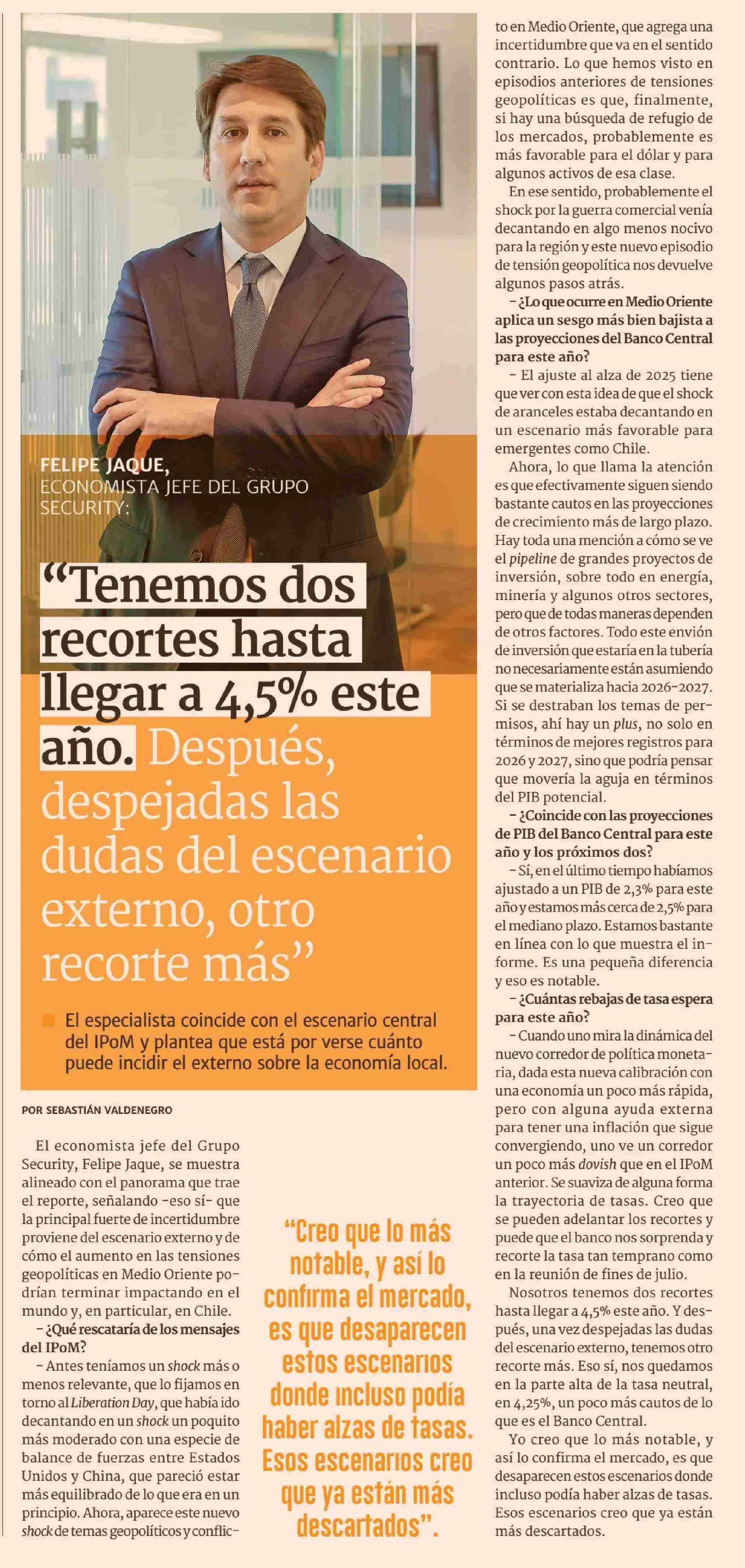 despejadas las dudas del escenario externo, otro recorte más” 19-06-2025 Diario Financiero |