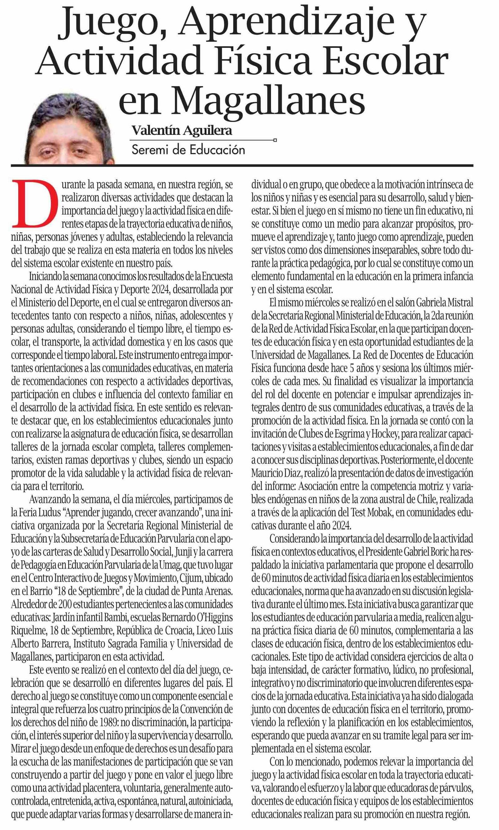 Juego, Aprendizaje y Física Escolar en Magallanes