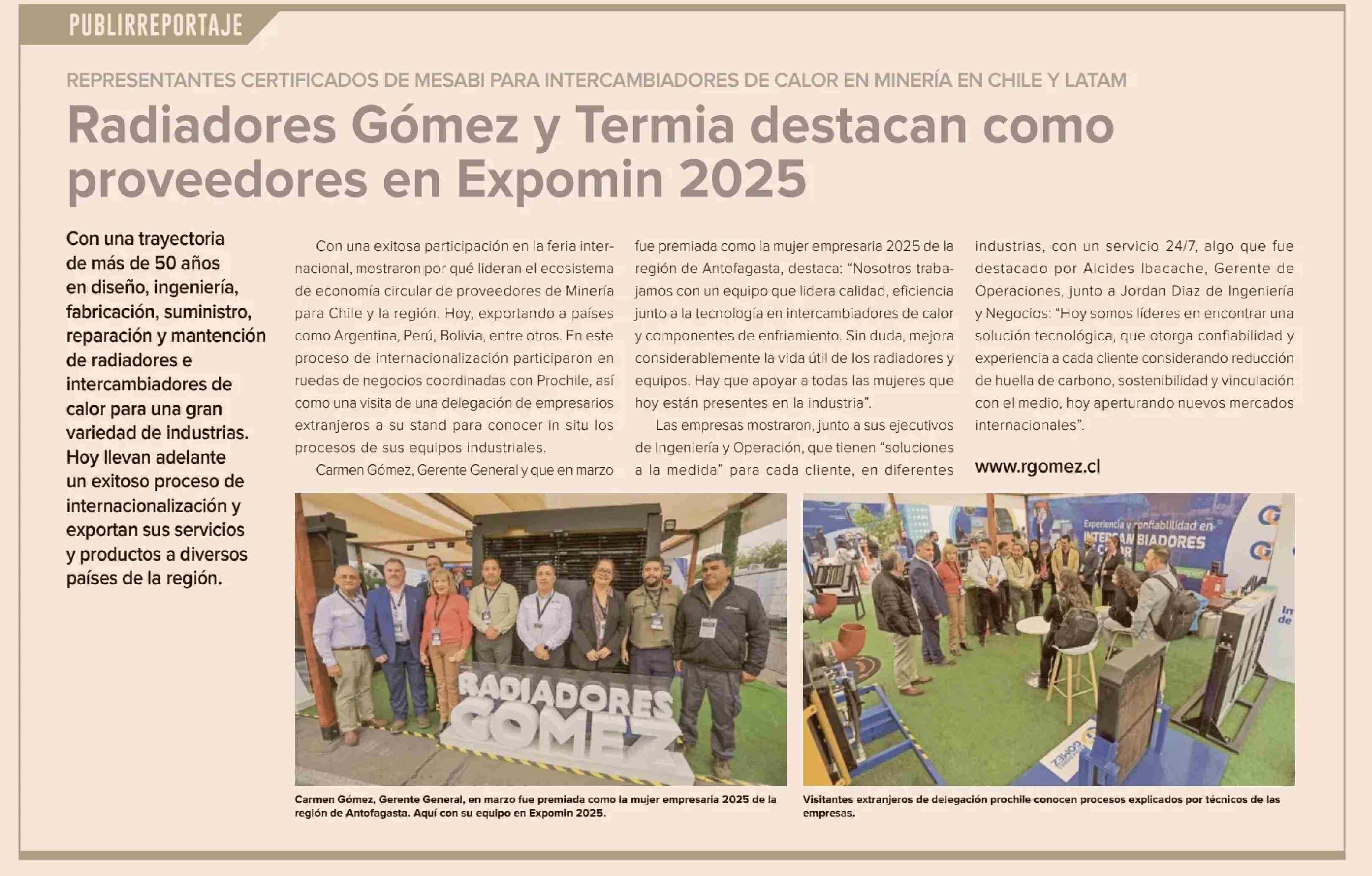 Radiadores Gómez y Termia destacan como proveedores en Expomin 2025 09-05-2025 Diario Financiero |