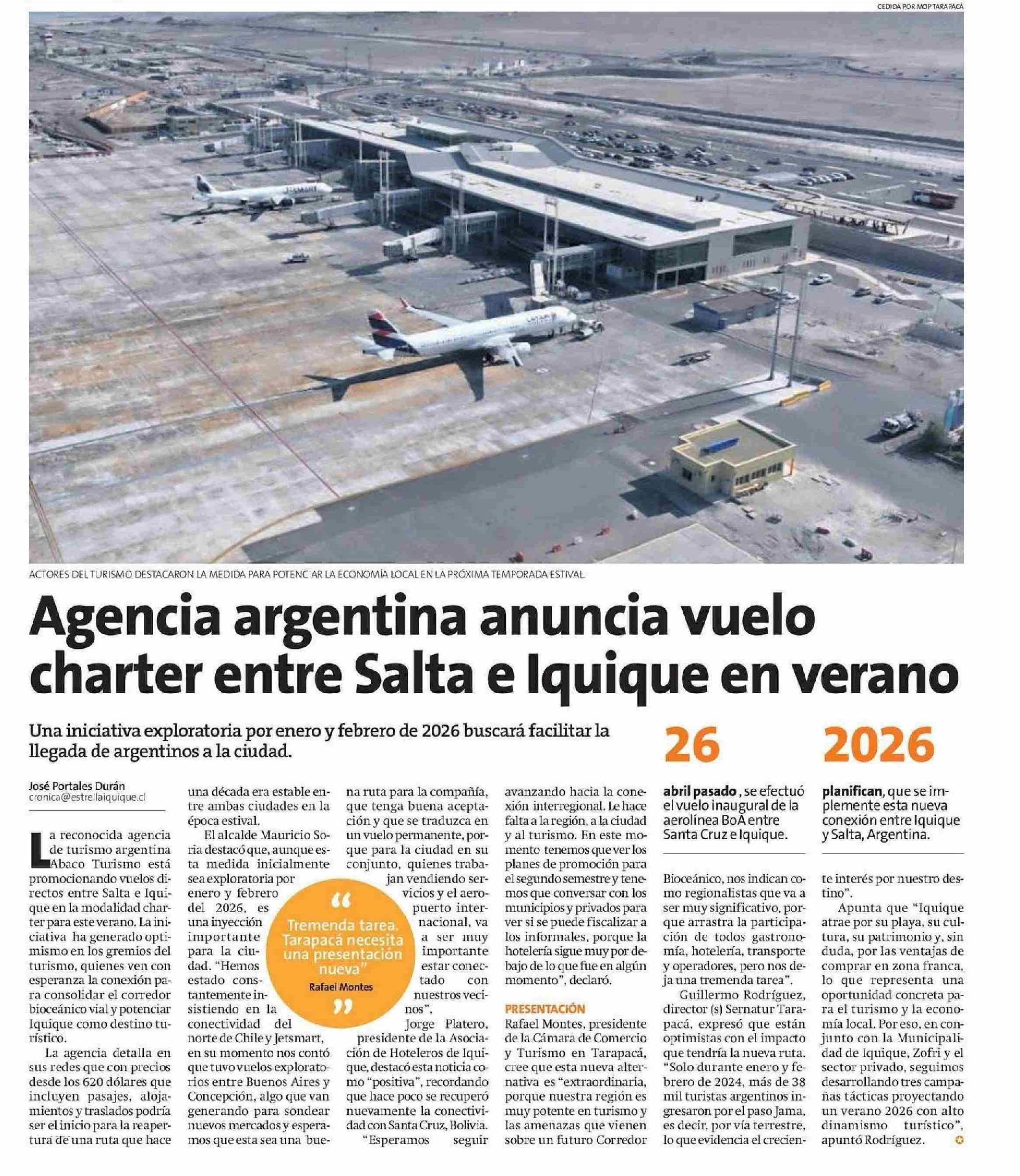 Agencia argentina anuncia vuelo charter entre Salta e Iquique en verano 14-06-2025 La Estrella de Iquique |