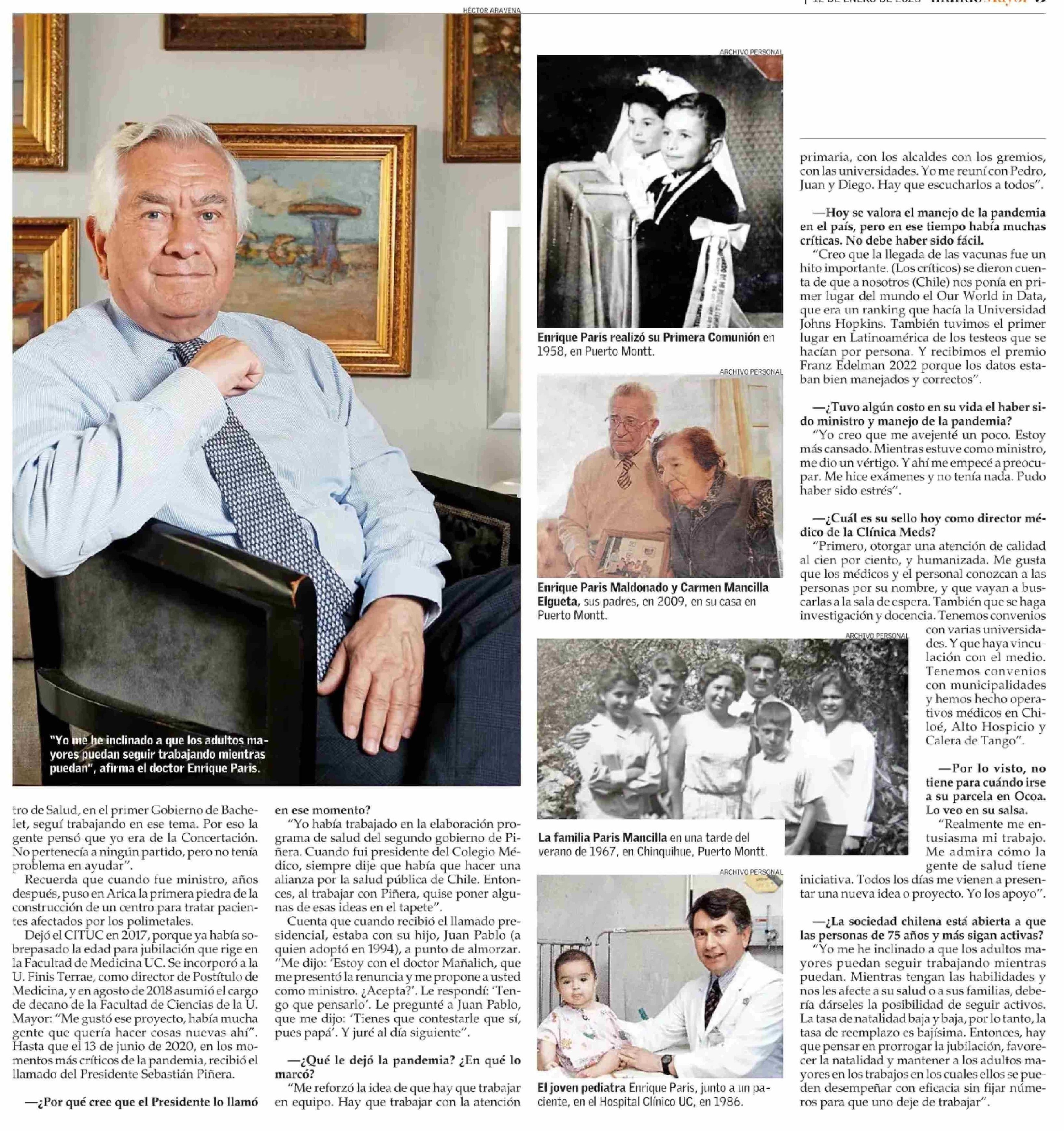 Enrique Paris: “Me interesa ayudar porque en salud hay mucho por hacer” 12-01-2026 El Mercurio |