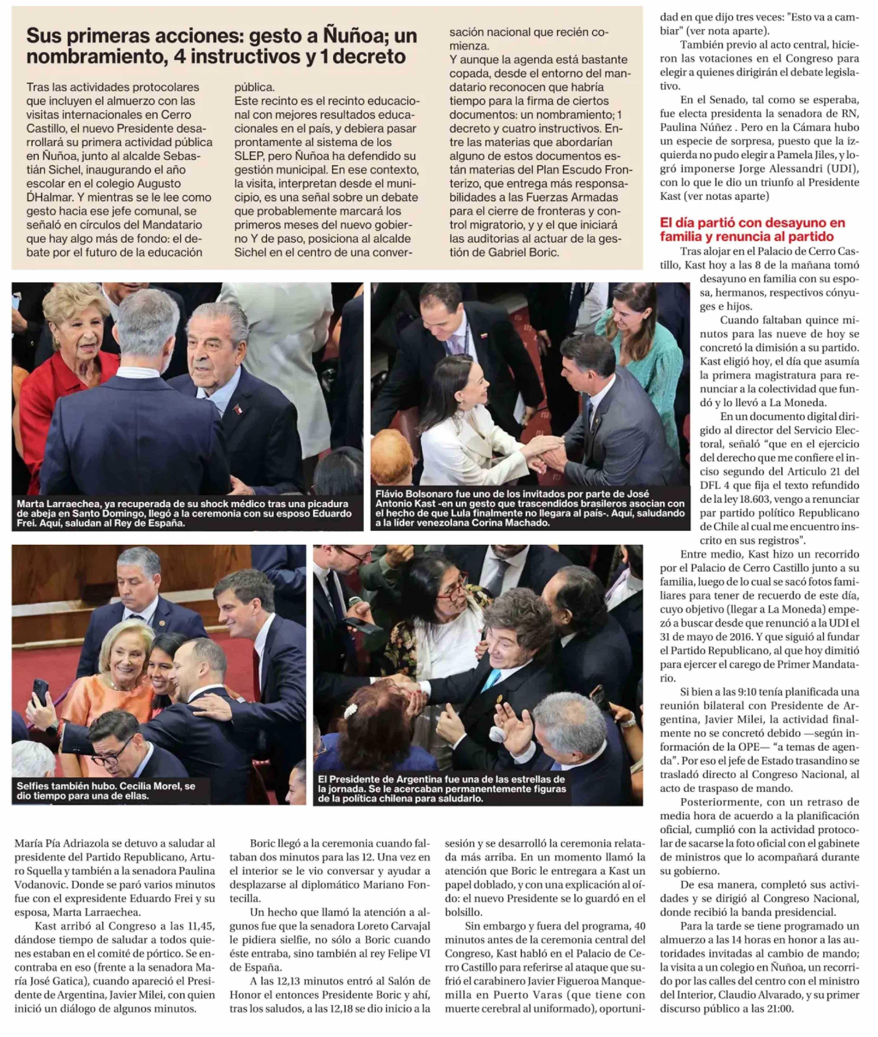 Título: Kast asume la Presidencia y la derecha dirigirá la Cámara y el Senado