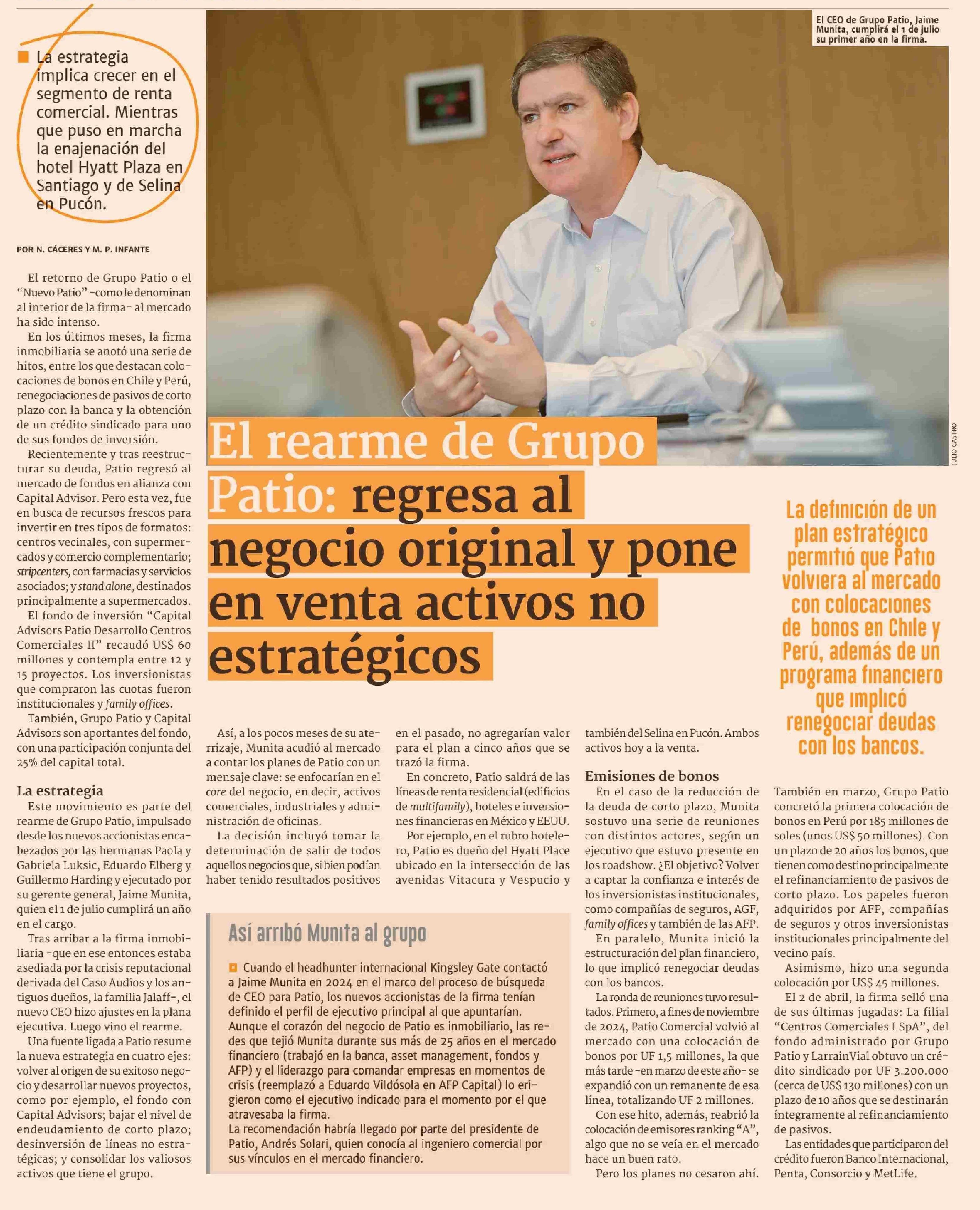 El rearme de Grupo Patio: regresa al negocio original y pone en venta activos no estratégicos 30-05-2025 Diario Financiero |