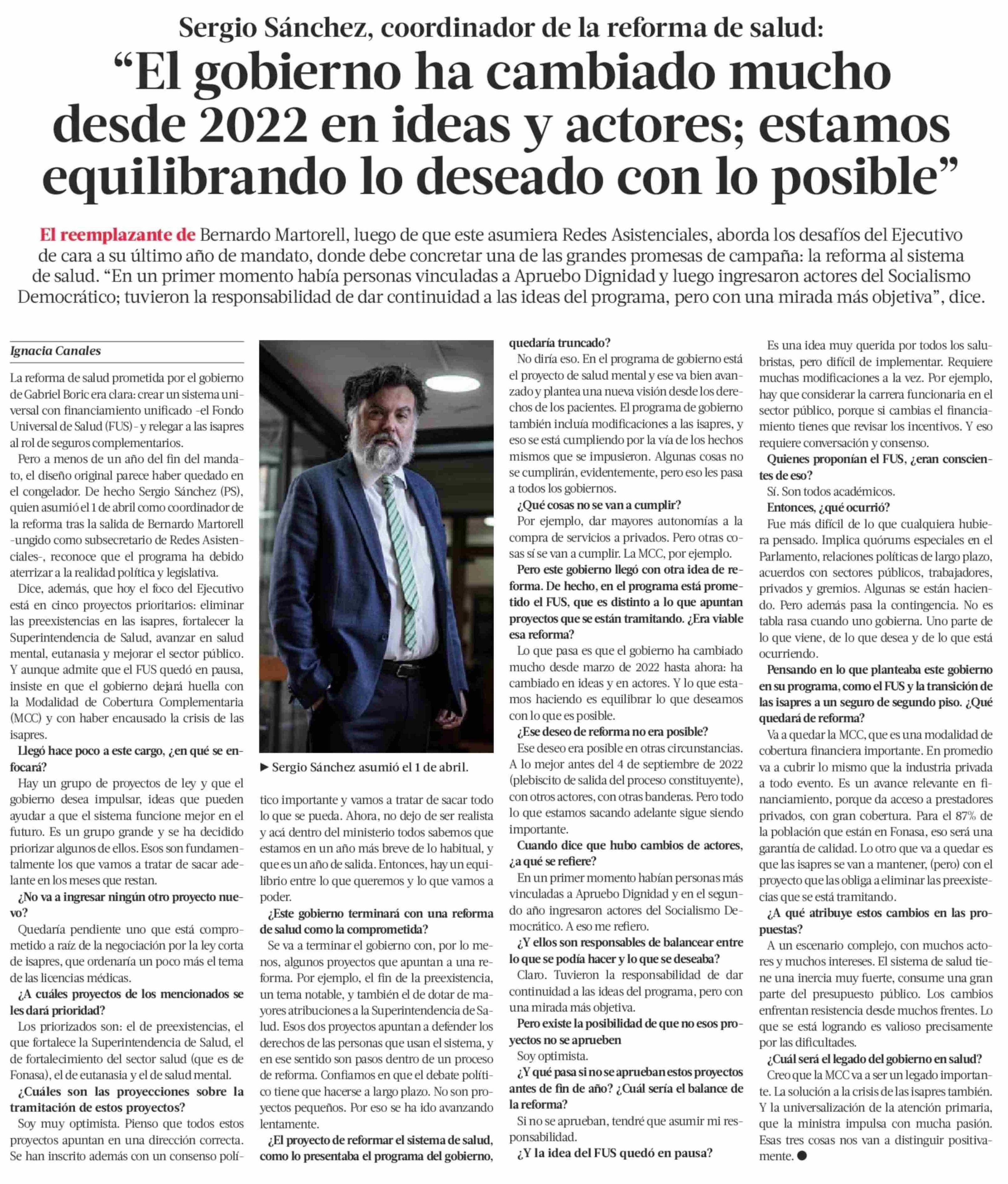 Título: “El gobierno ha cambiado mucho desde 2022 en ideas y actores; estamos equilibrando lo deseado con lo posible”