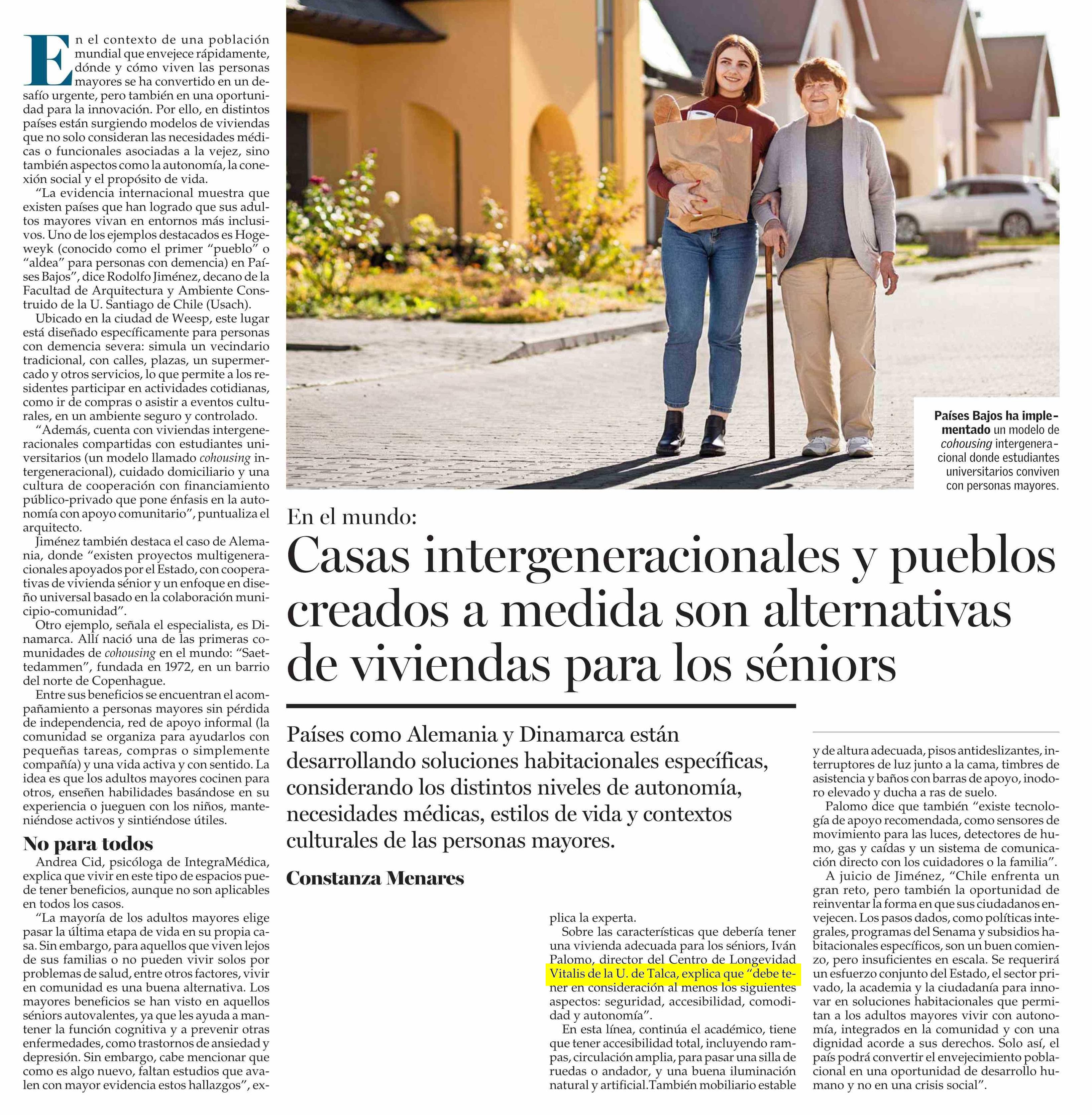 Casas intergeneracionales y pos ercados a medida son alternativa de viviendas para los séniors 19-05-2025 El Mercurio |