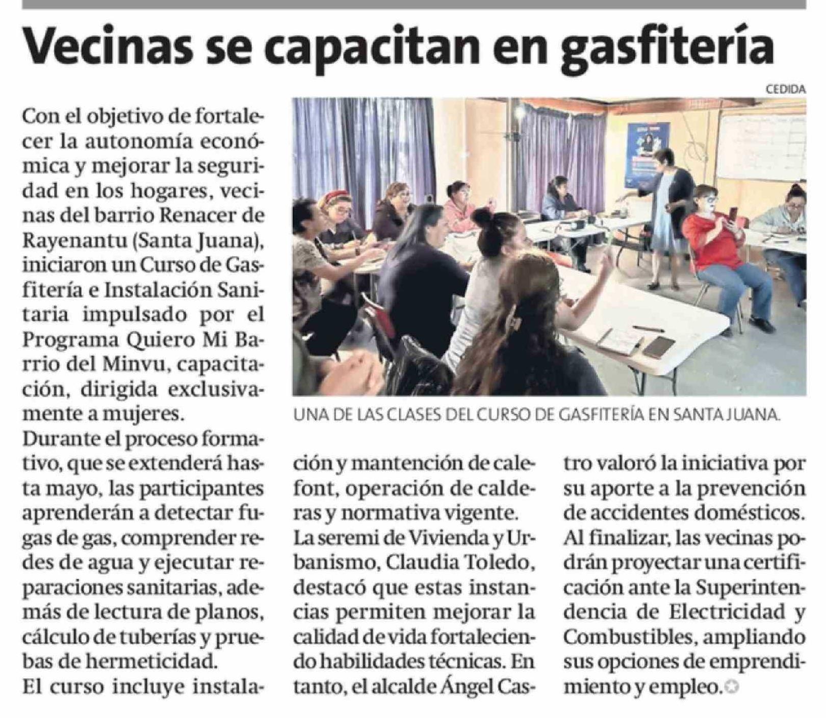 Vecinas se capacitan en gasfitería 05-03-2026 La Estrella de Concepción |