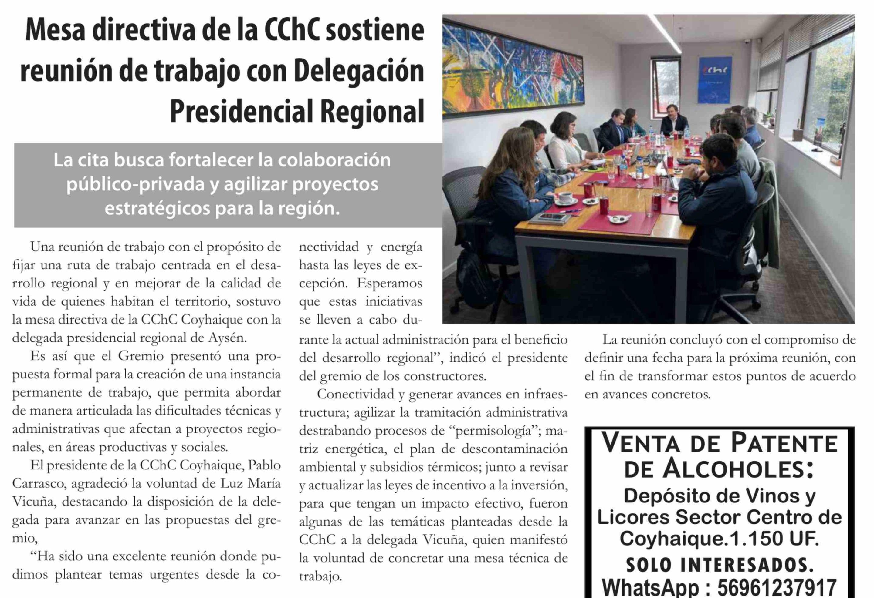 Mesa directiva de la CChC sostiene reunión de trabajo con Delegación Presidencial Regional 01-04-2026 El Divisadero |