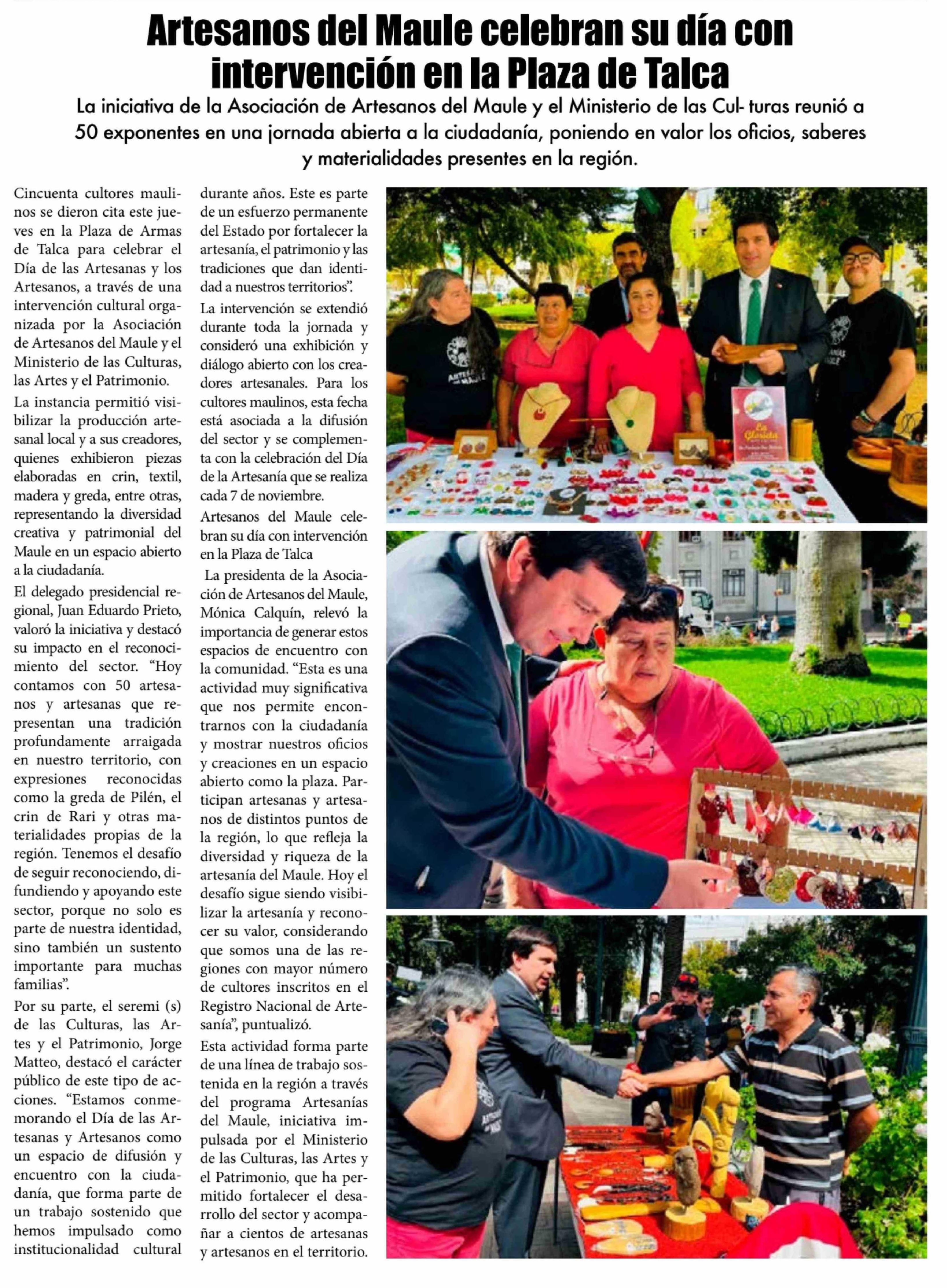 | Título: | Artesanos del Maule celebran su día con intervención en la Plaza de Talca |