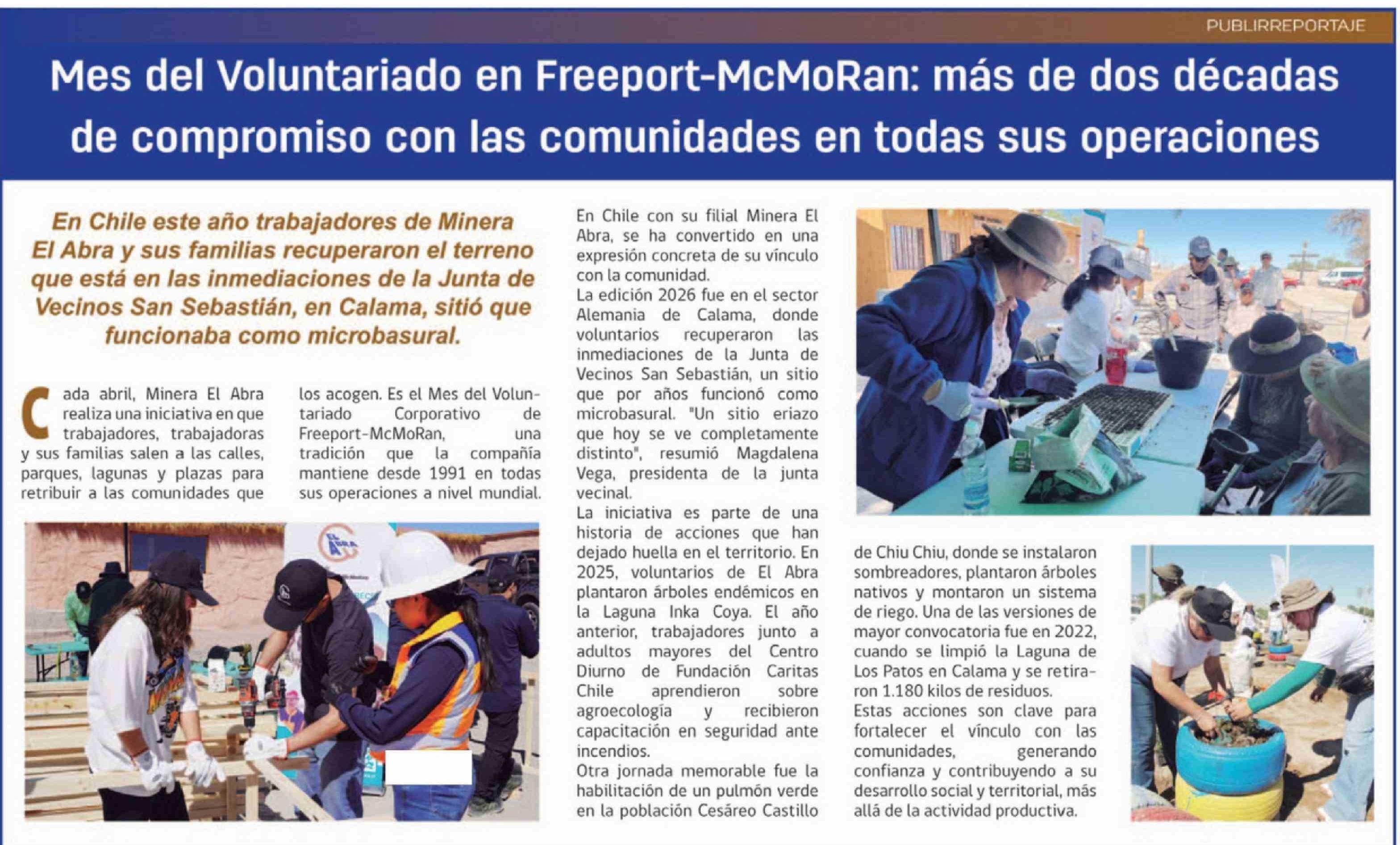 Título: Mes del Voluntariado en Freeport-McMoRan: más de dos décadas de compromiso con las comunidades en todas sus operaciones