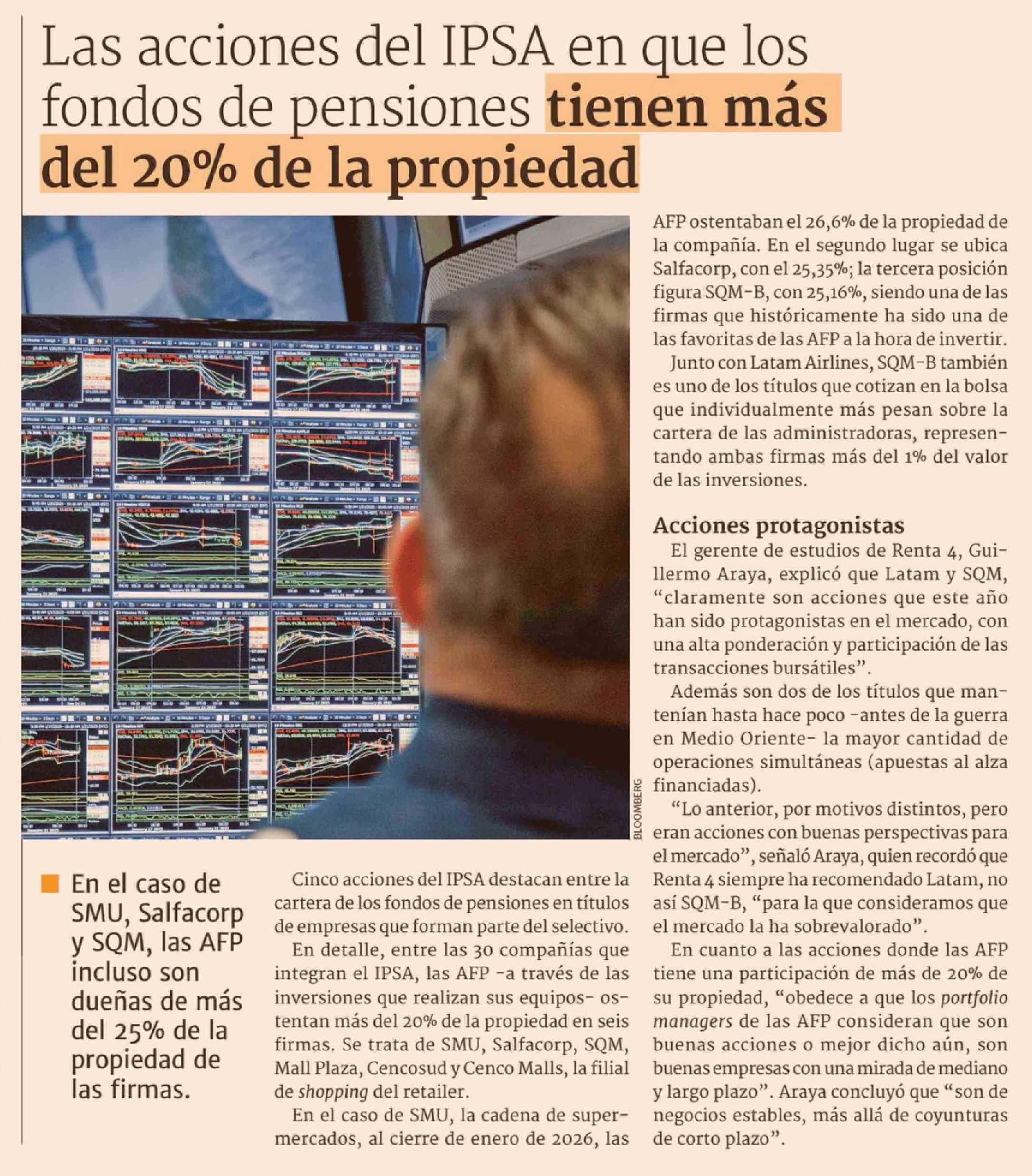 Las acciones del IPSA en que los fondos de pensiones tienen más del 20% de la propiedad 11-03-2026 Diario Financiero |