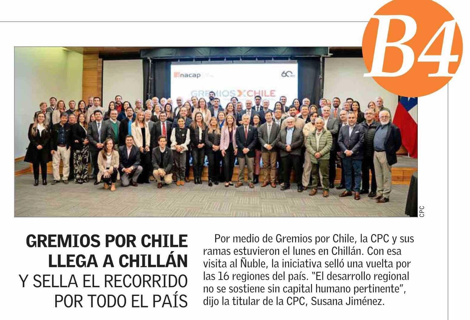 GREMIOS POR CHILE LLEGA A CHILLÁN Y SELLA EL RECORRIDO POR TODO EL PAÍS 15-04-2026 El Mercurio |
