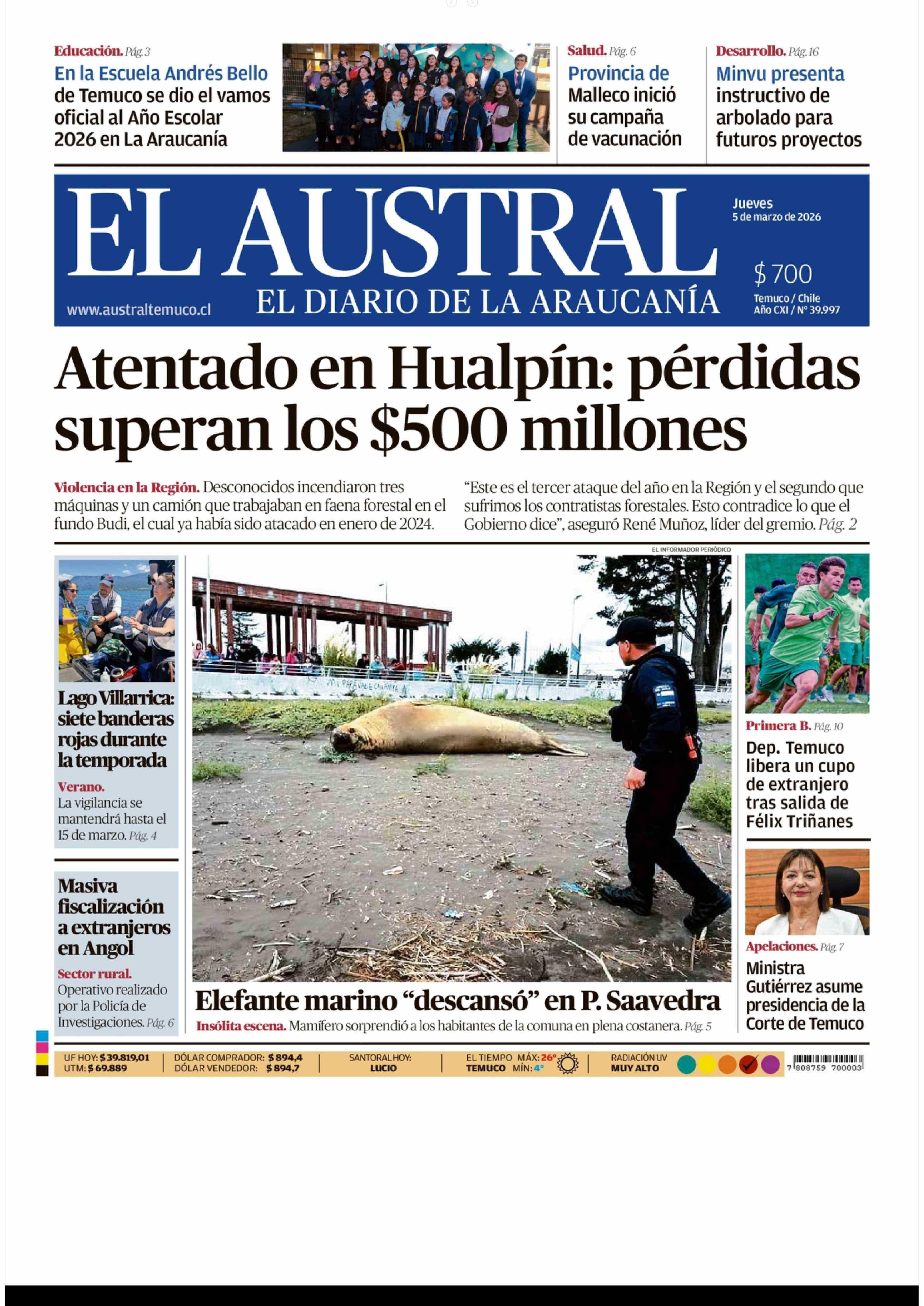 | Fecha: | 05-03-2026 | Sector: | Portada | Región: | Región de la Araucanía |