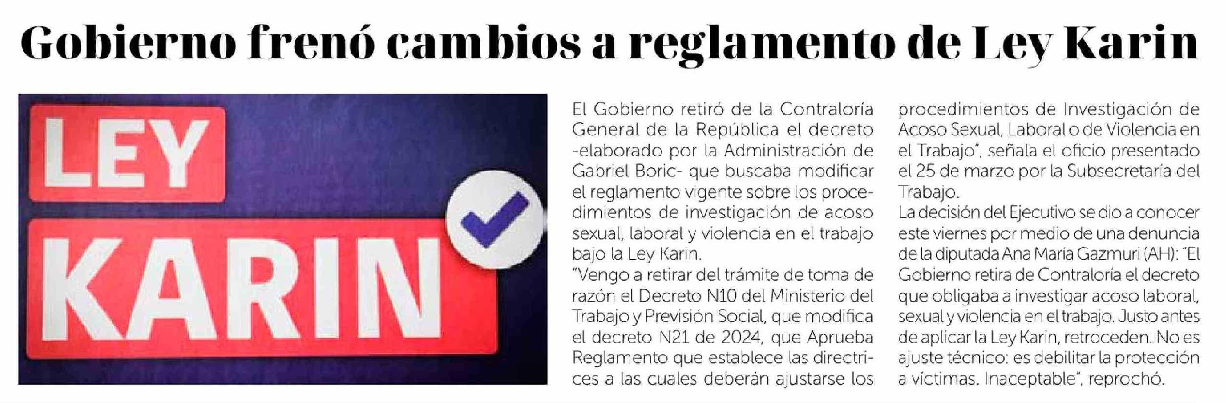 Gobierno frenó cambios a reglamento de Ley Karin 05-04-2026 La Discusión |