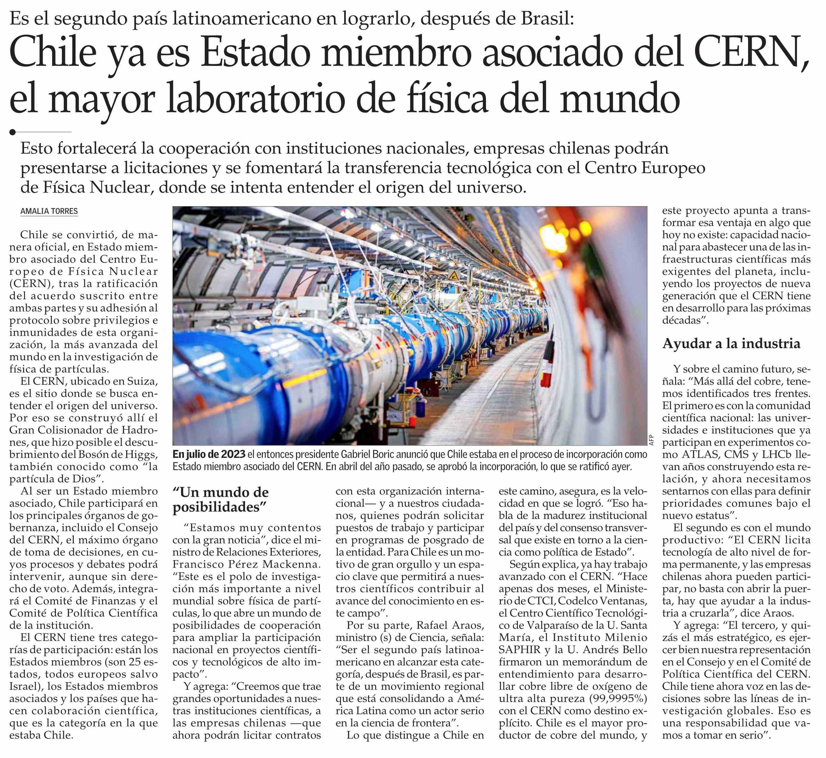 Título: Chile ya es Estado miembro asociado del CERN, el mayor laboratorio de física del mundo