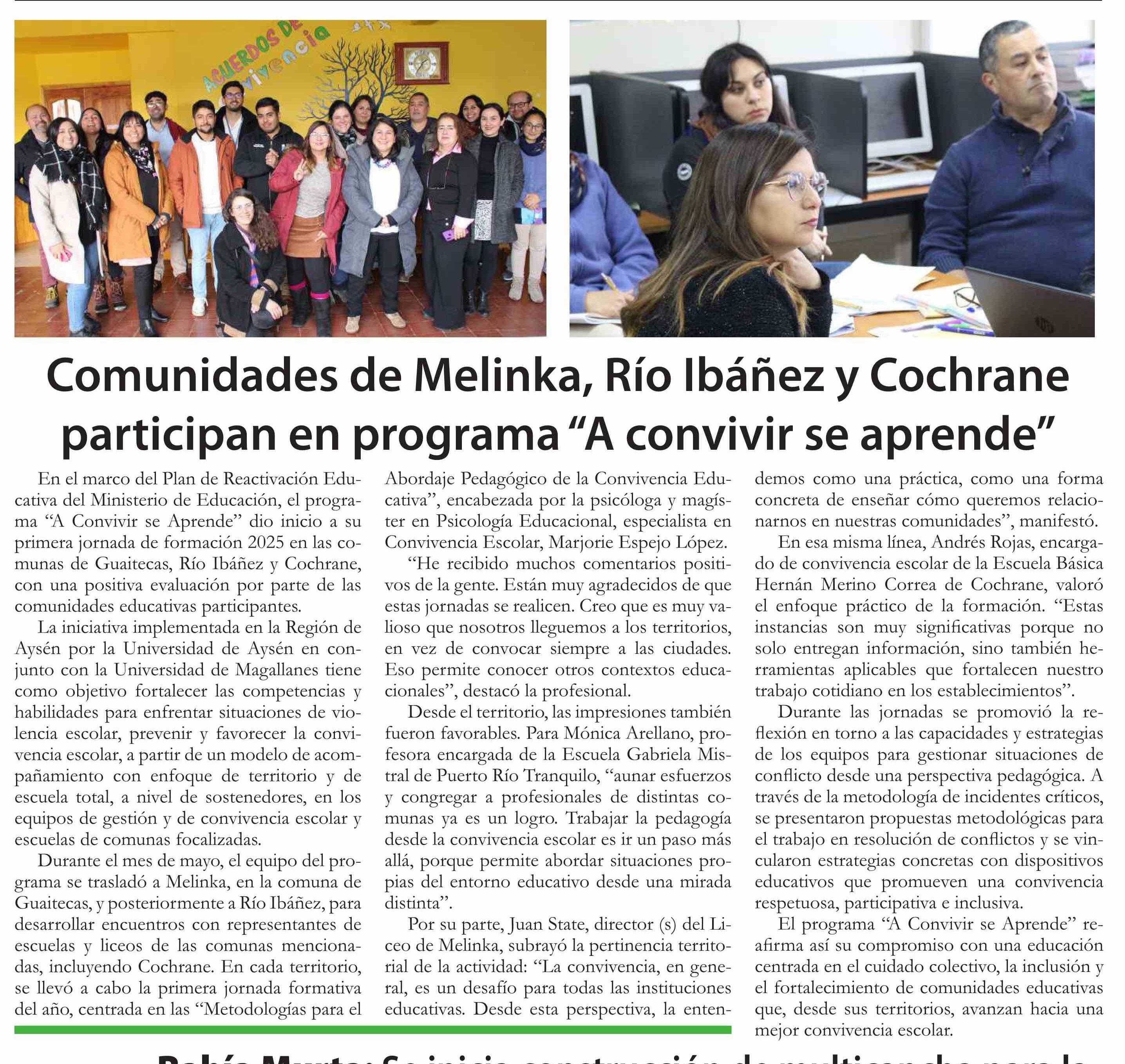 | Título: | Comunidades de Melinka, Río Ibáñez y Cochrane participan en programa “A convivir se aprende” |