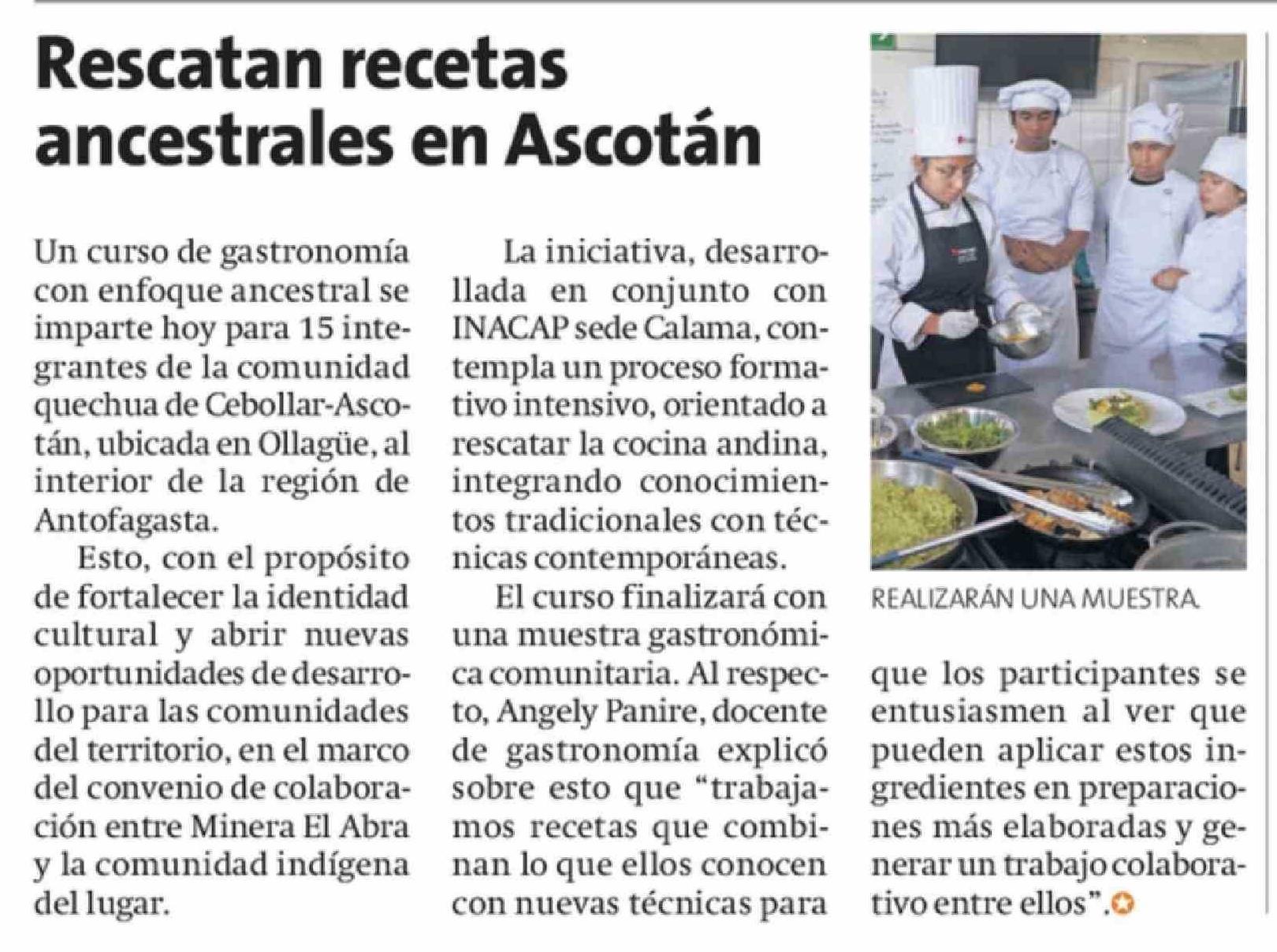Rescatan recetas ancestrales en Ascotán 03-04-2026 La Estrella de Antofagasta |