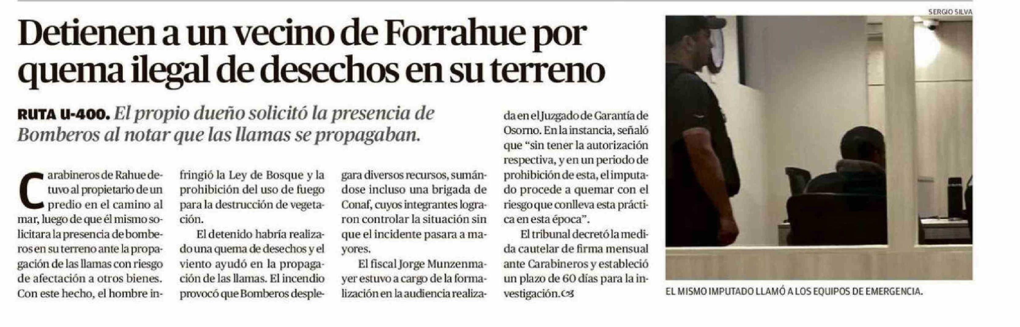 Título: Detienen a un vecino de Forrahue por quema ilegal de desechos en su terreno