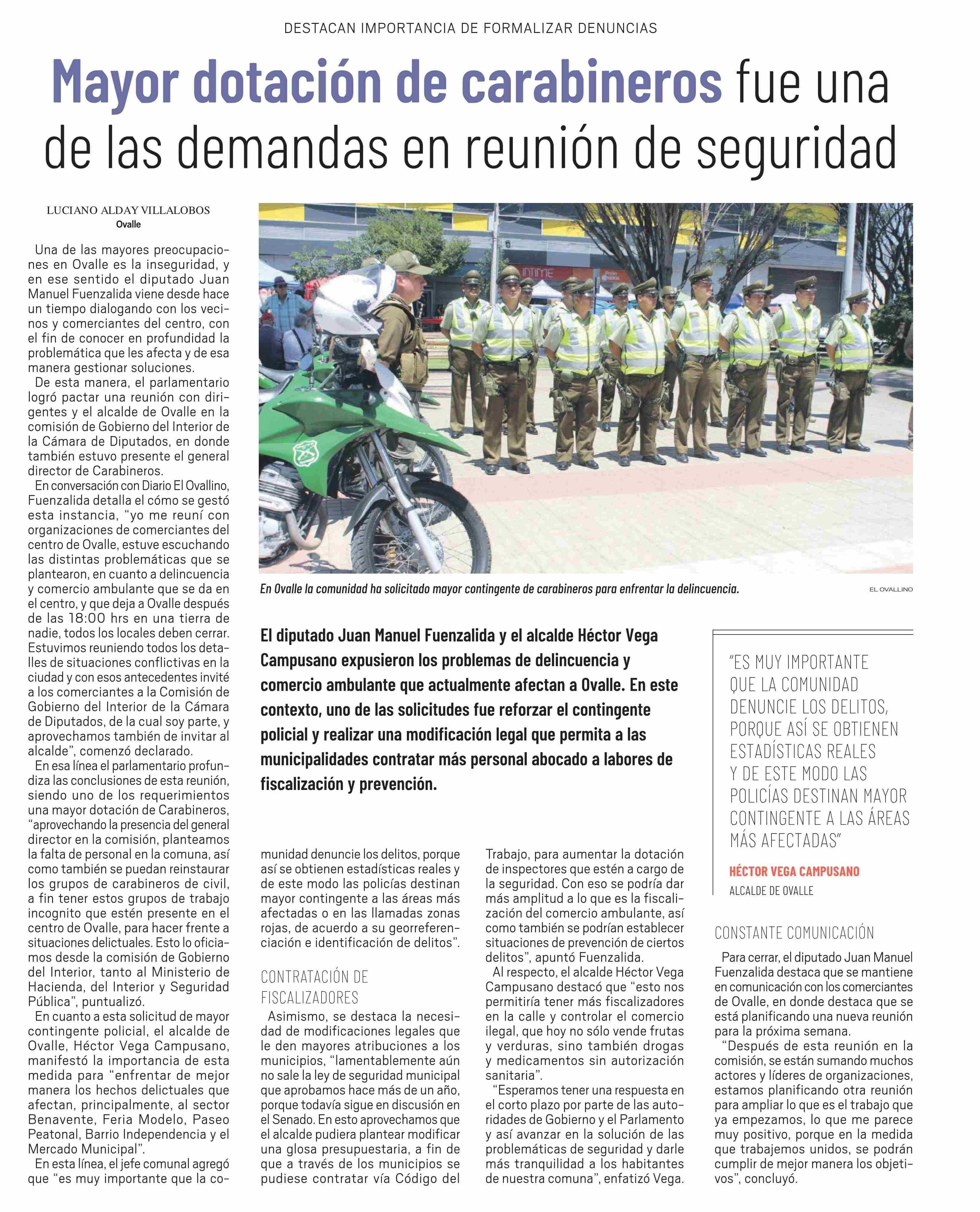Mayor dotación de carabineros fue una de las demandas en reunión de seguridad 20-06-2025 El Ovallino |