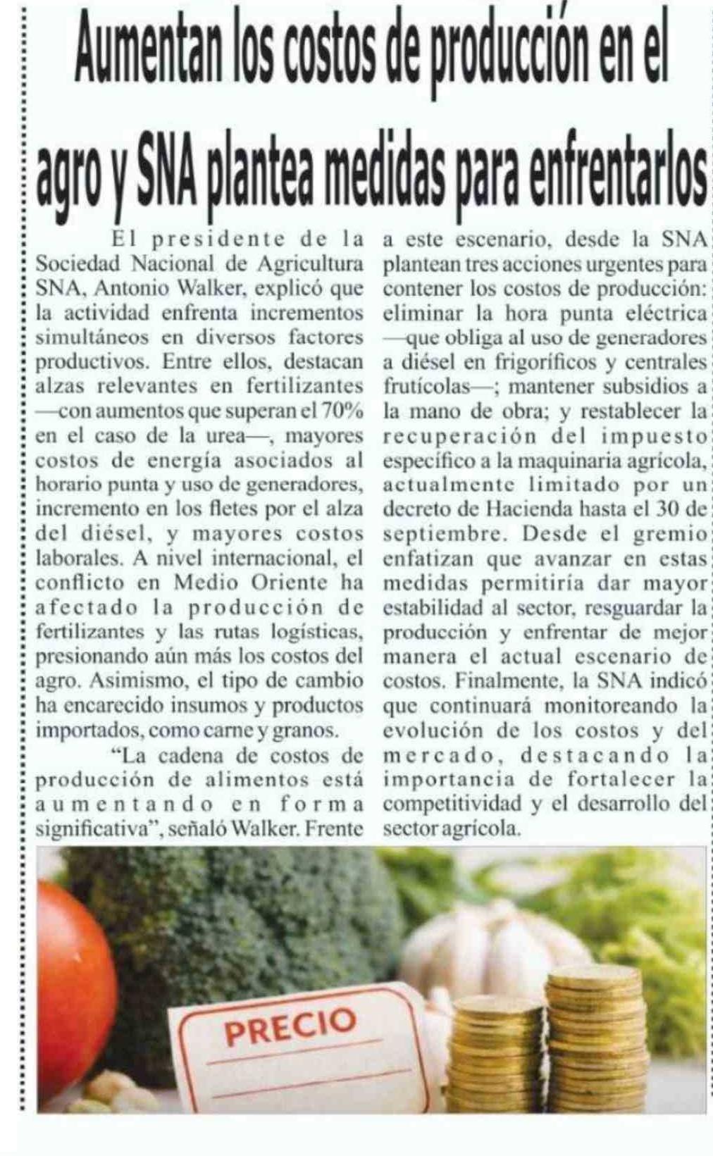 Título: Aumentan los costos de produccion en el agro y SNA plantea medidas para efrentarlos
