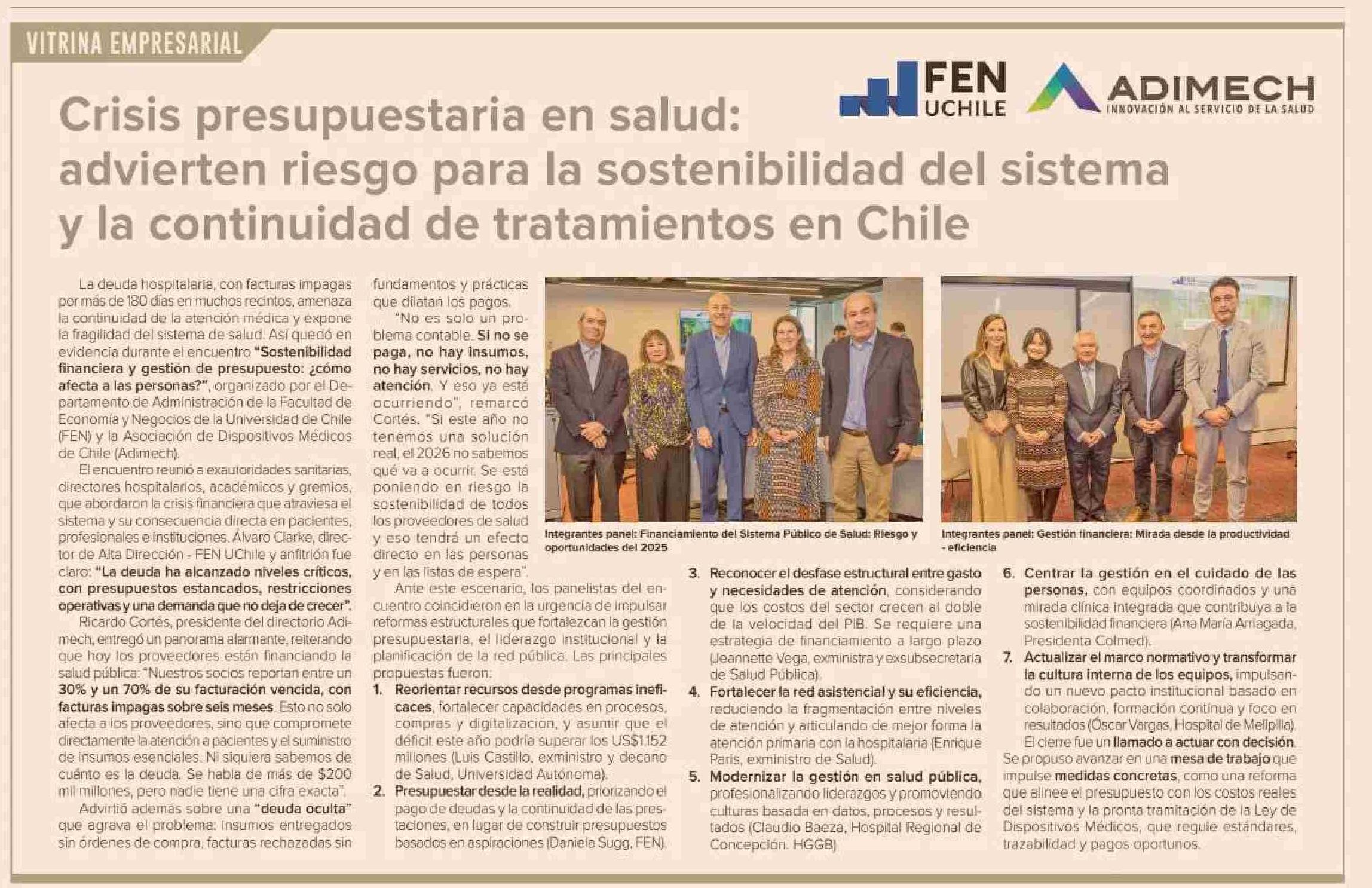 Crisis presupuestaria en salud: advierten riesgo para la sostenibilidad del sistema y la continuidad de tratamientos en Chile 13-05-2025 Diario Financiero |