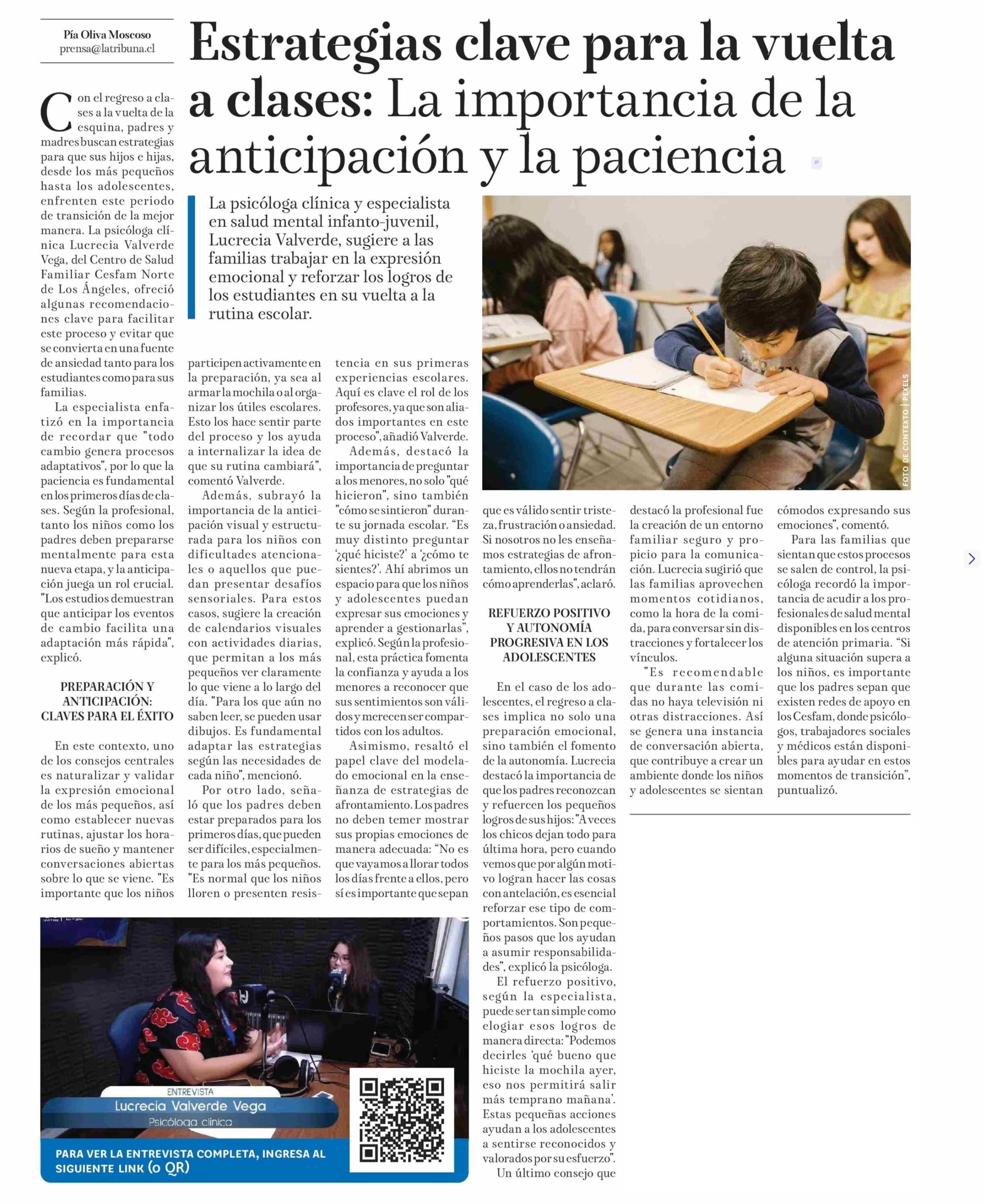 Estrategias clave para la vuelta a clases: La importancia de la anticipación y la paciencia 04-03-2025 La Tribuna |