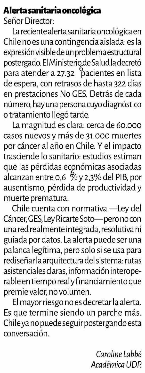 CARTAS: Alerta sanitaria oncológica 11-04-2026 La Discusión |