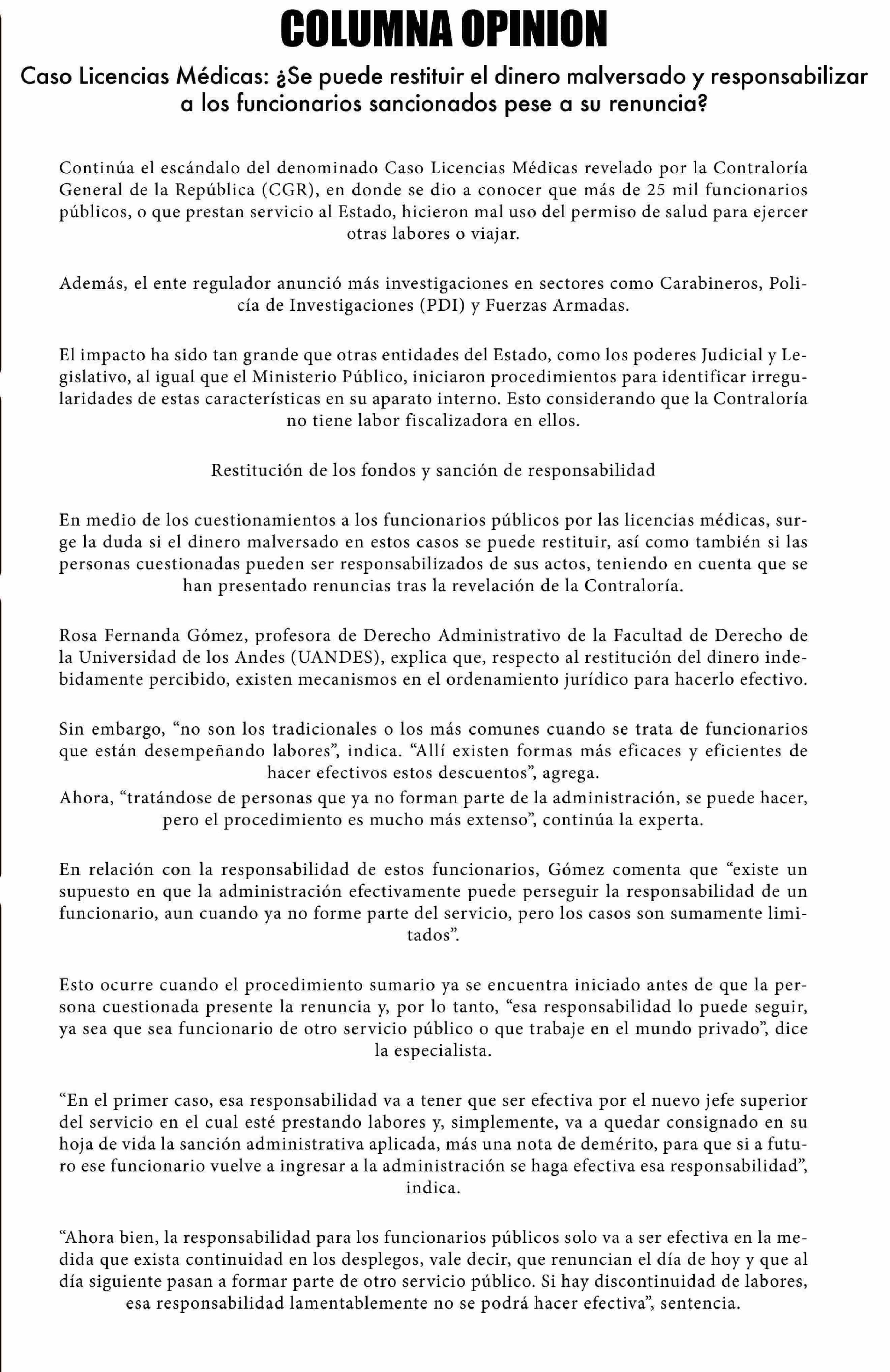 Título: COLUMNAS DE OPINIÓN: ¿Se puede restituir el dinero malversado y responsabilizar