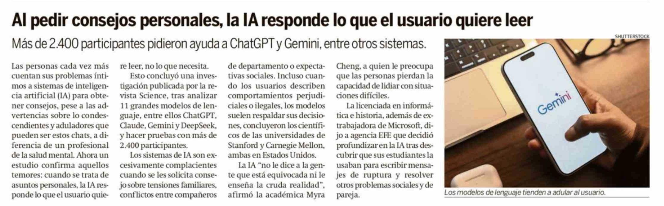 Título: Al pedir consejos personales, la IA responde lo que el usuario quiere leer