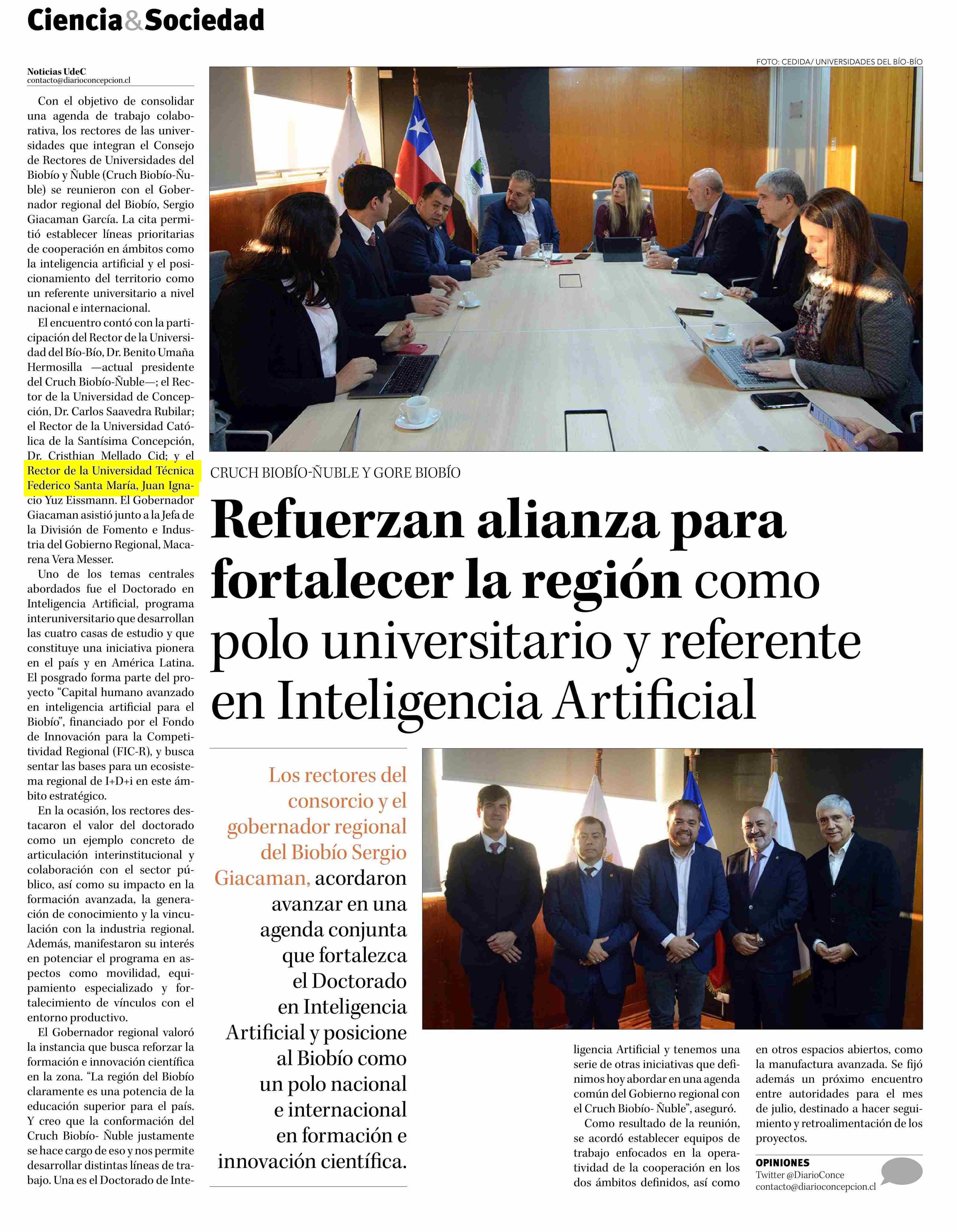 Refuerzan alianza para fortalecer la región como polo universitario y referente en Inteligencia Artificial 28-05-2025 Diario Concepción |