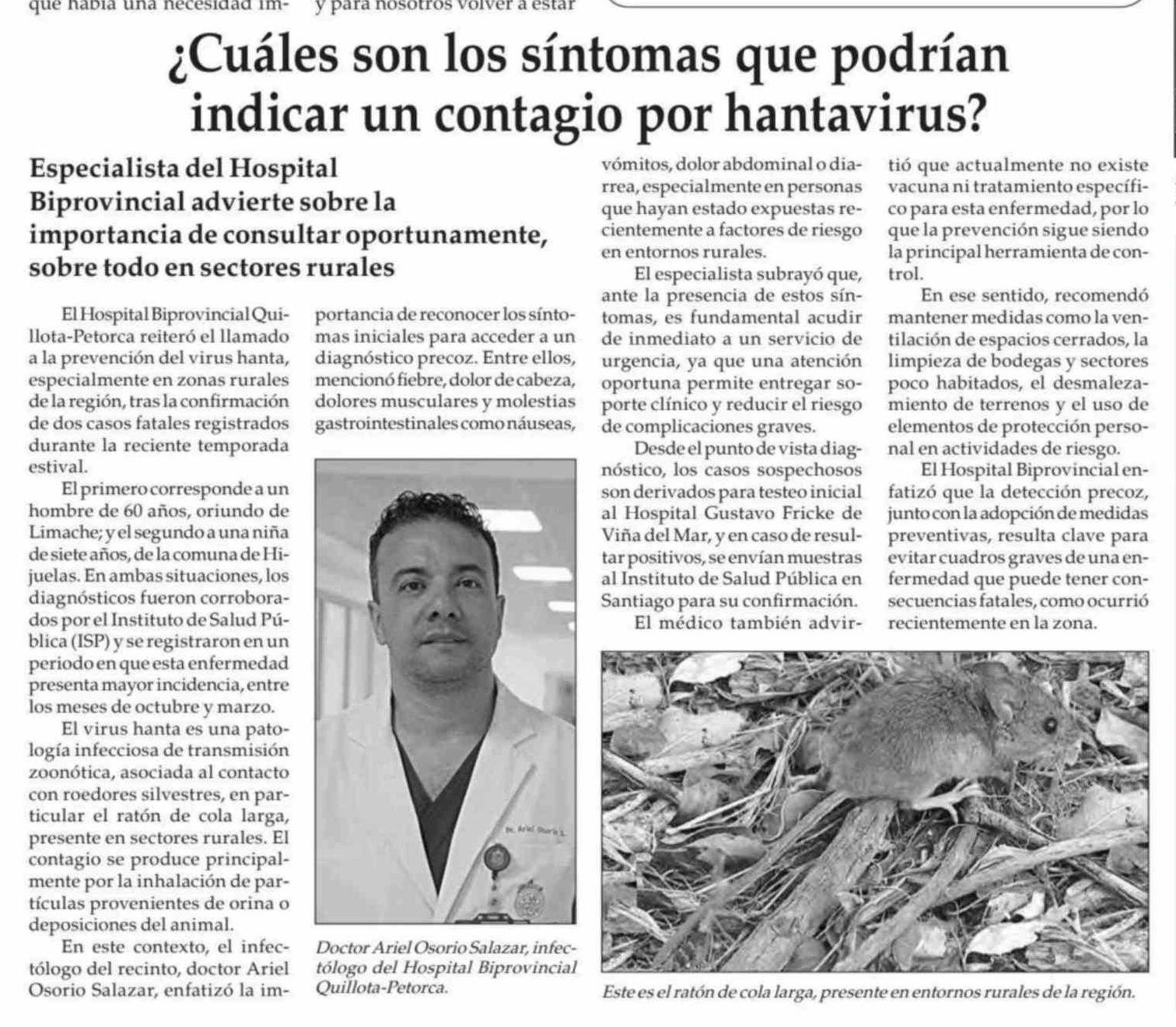 | Título: | ¿Cuáles son los síntomas que podrían indicar un contagio por hantavirus? |