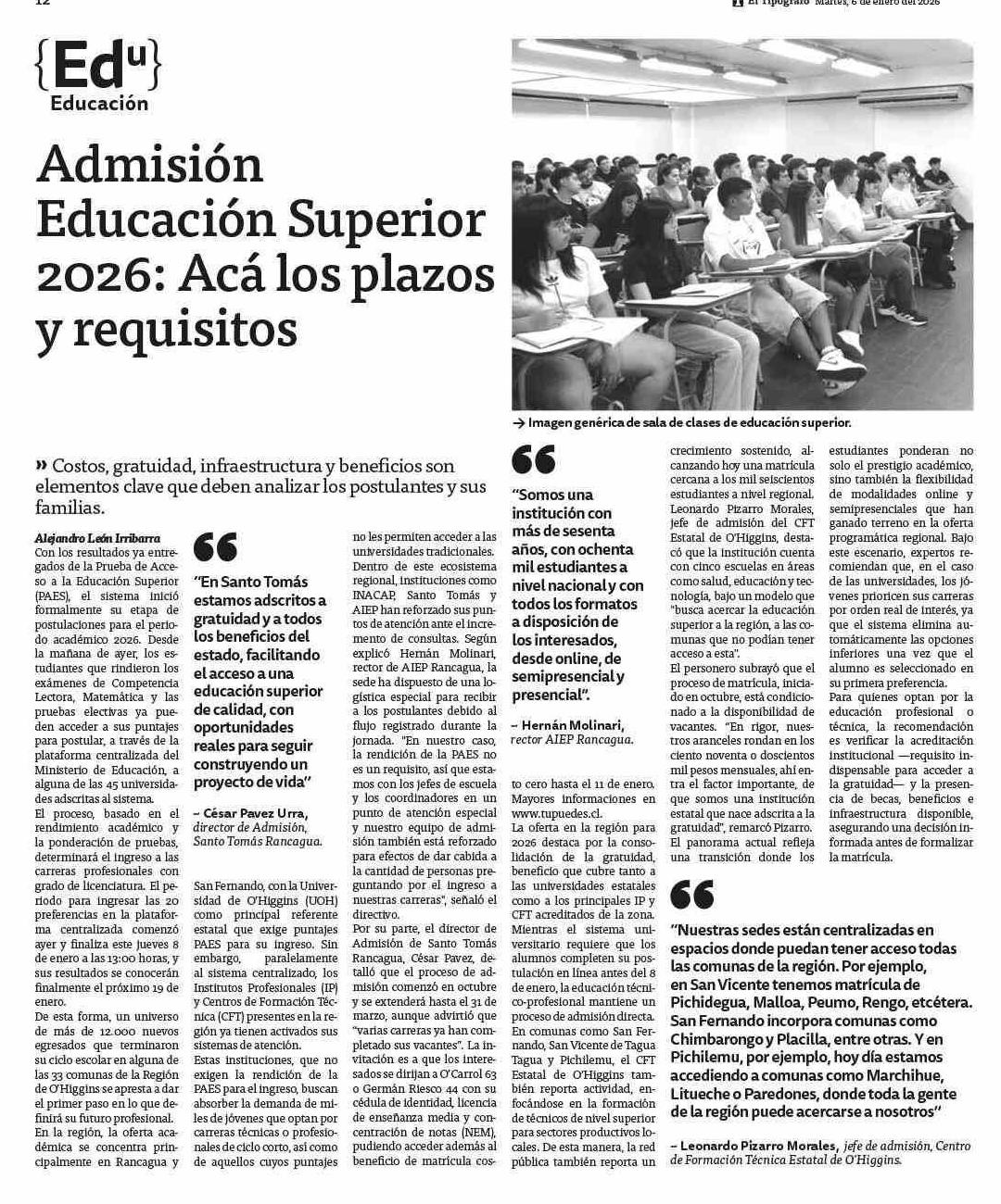 Admisión Educación Superior 2026: Acá los plazos y requisitos 06-01-2026 El Tipógrafo |