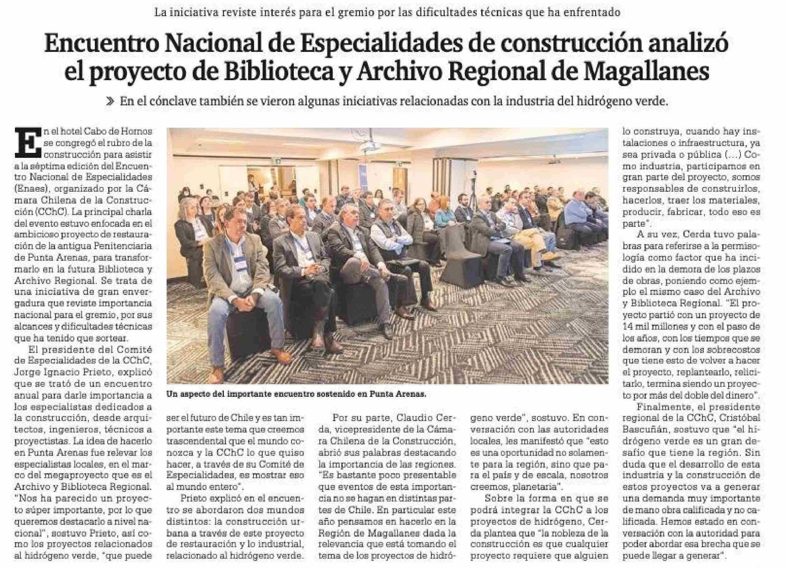 Encuentro Nacional de Especialidades de construcción analizó el proyecto de Biblioteca y Archivo Regional de Magallanes 26-04-2025 La Prensa Austral |