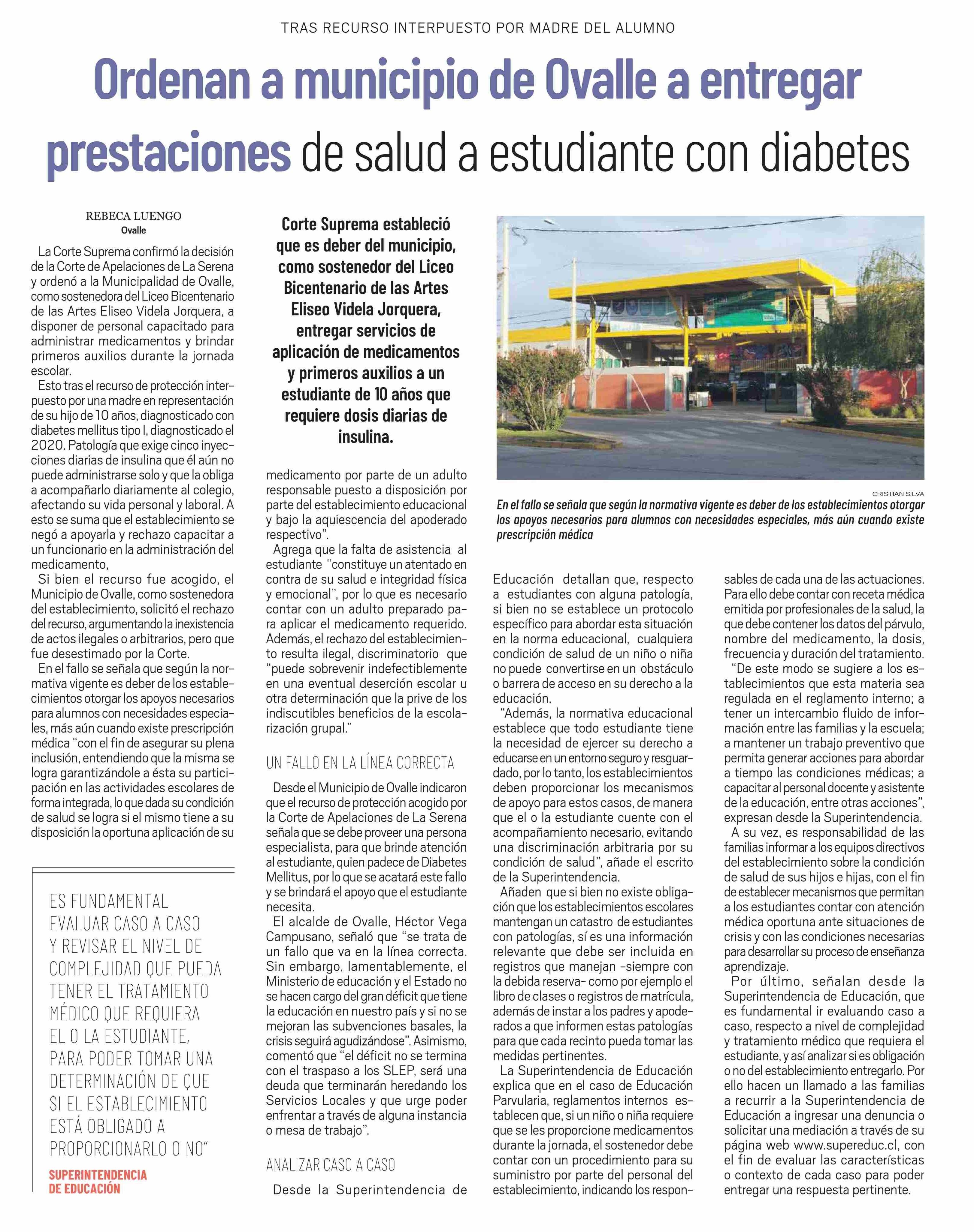 Ordenan a municipio de Ovalle a entregar prestaciones de salud a estudiante con diabetes 22-06-2025 El Ovallino |