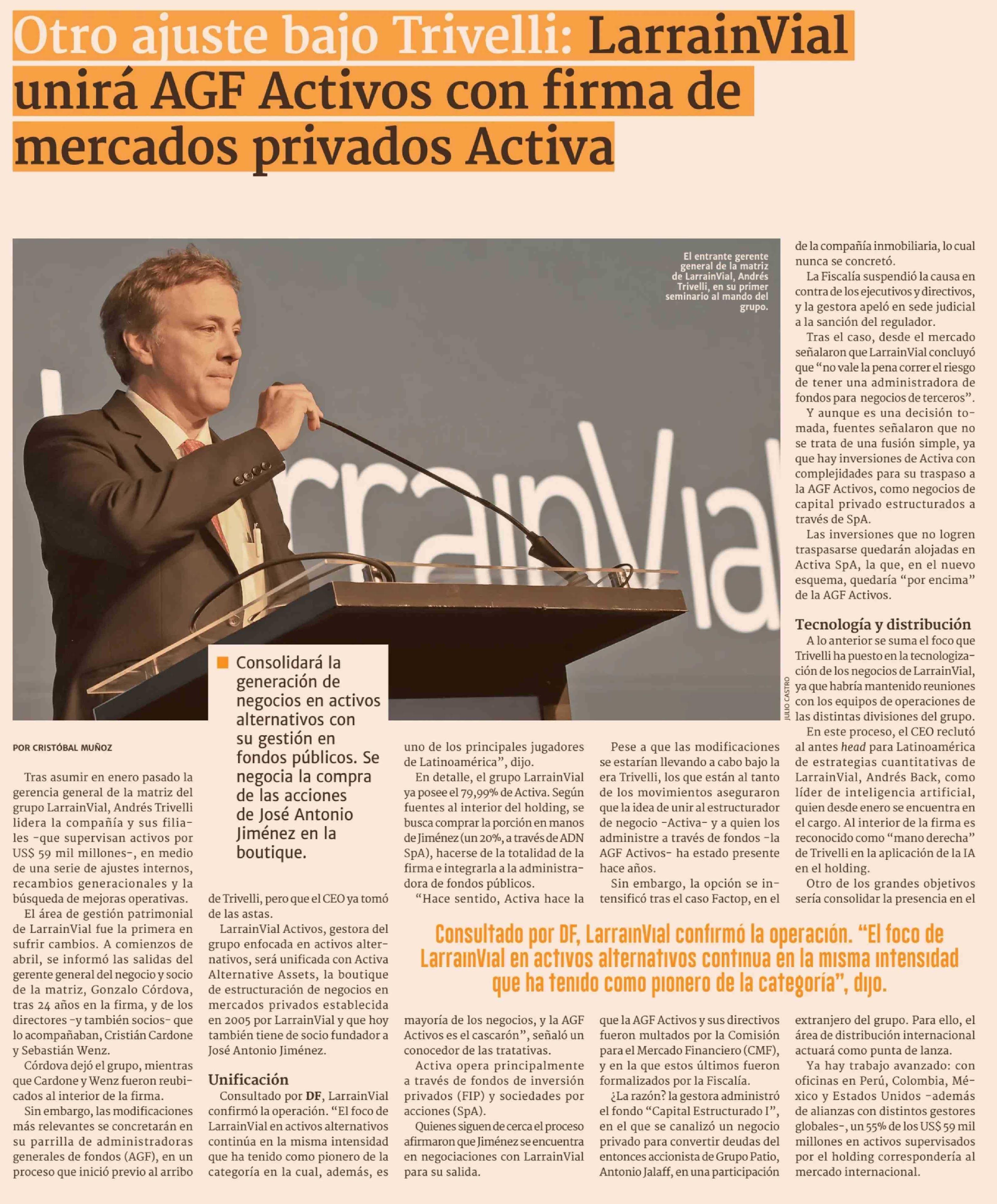 Título: Otro ajuste bajo Trivelli: LarrainVial unirá AGF Activos con firma de mercados privados Activa