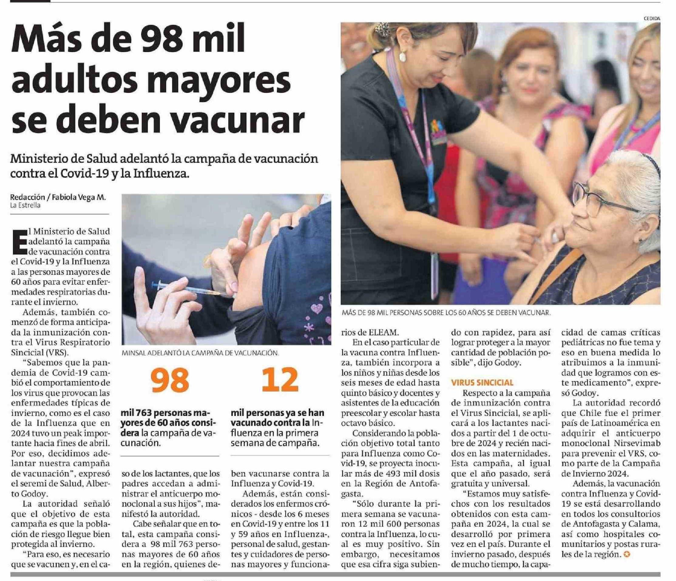 Más de 98 mil adultos mayores se deben vacunar 13-03-2025 La Estrella de Antofagasta |