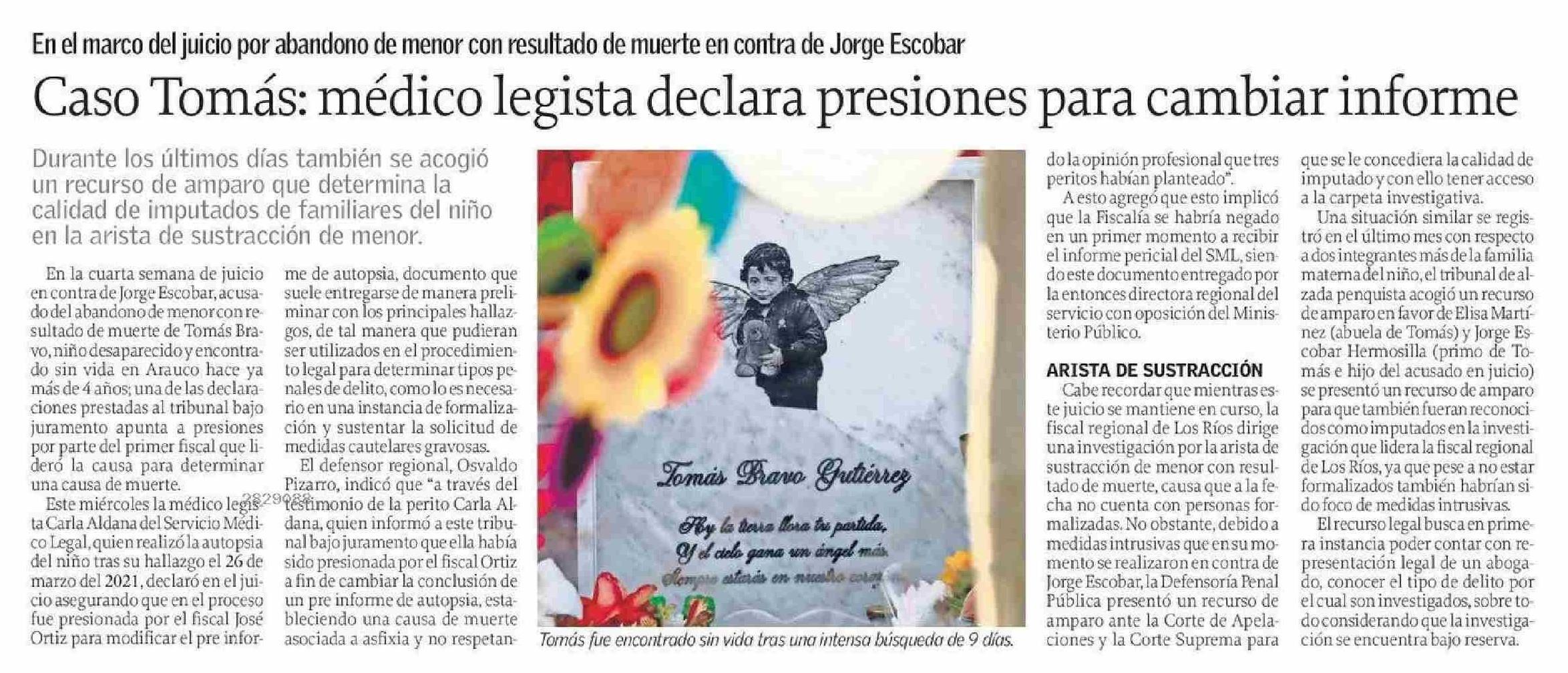 Caso Tomás: médico legista declara presiones para cambiar informe 20-06-2025 El Sur |