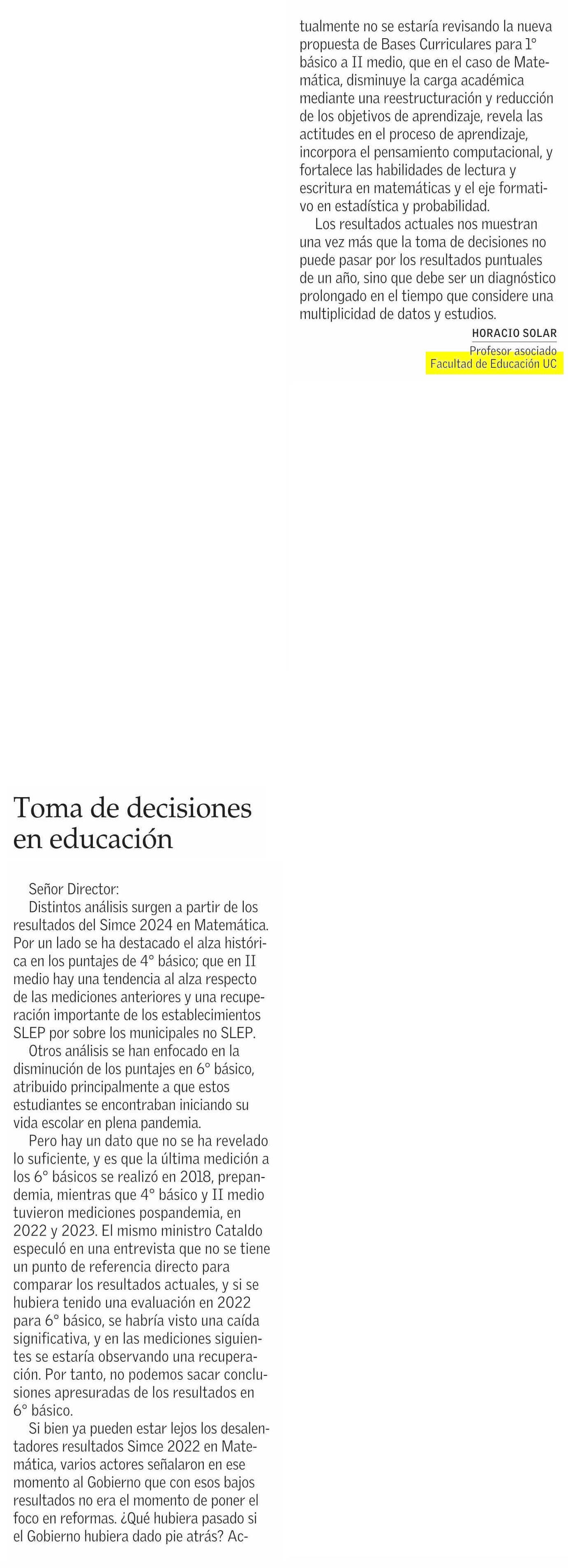 CARTAS: Toma de decisiones en educación 12-03-2025 El Mercurio |