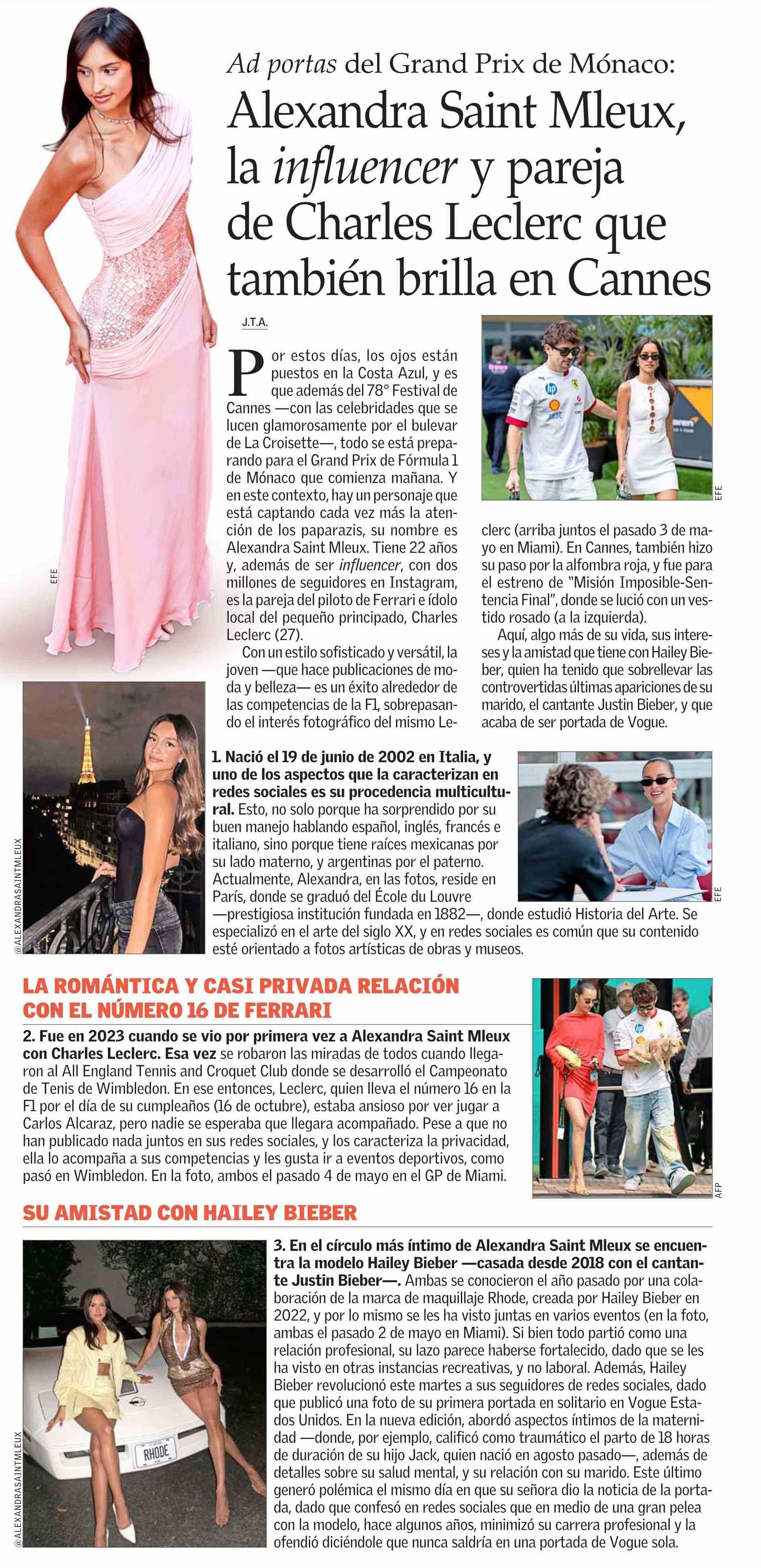 | Título: | Alexandra Saint Mleux, la influencer y pareja de Charles Leclerc que también brilla en Cannes |