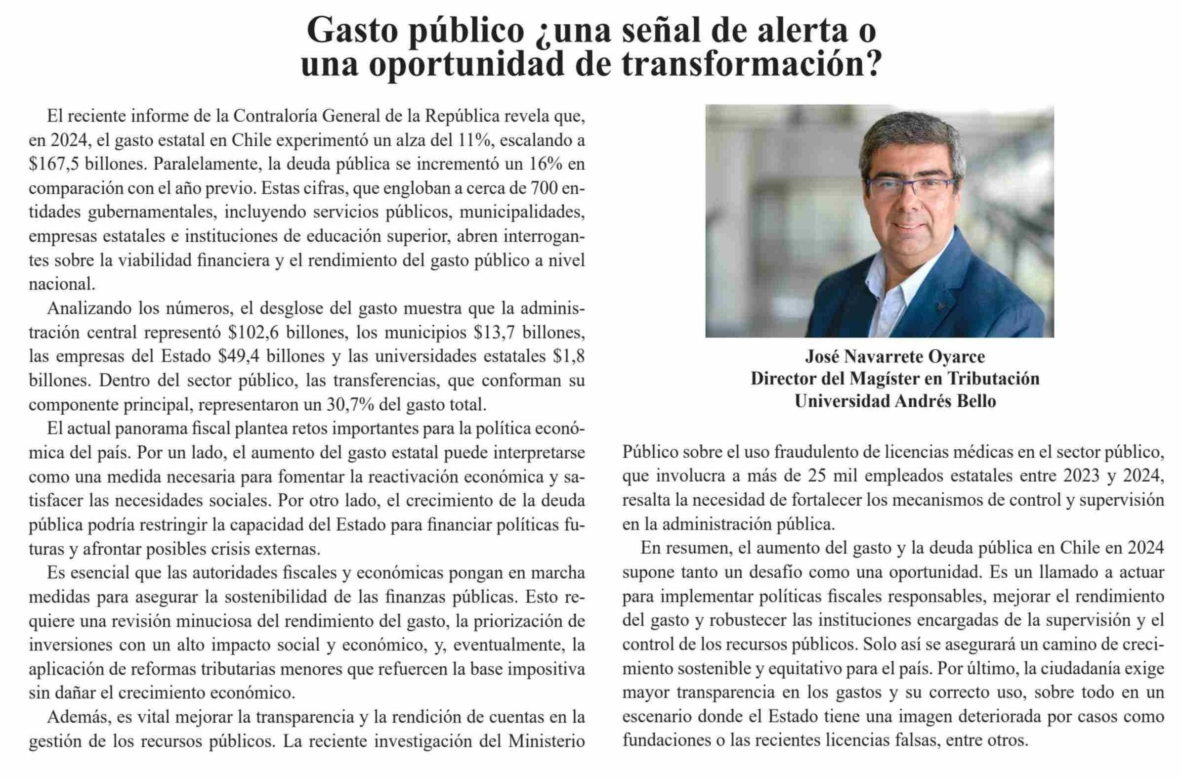 | Título: | COLUMNAS DE OPINIÓN: Gasto público ¿una señal de alerta o una oportunidad de transformación? |
