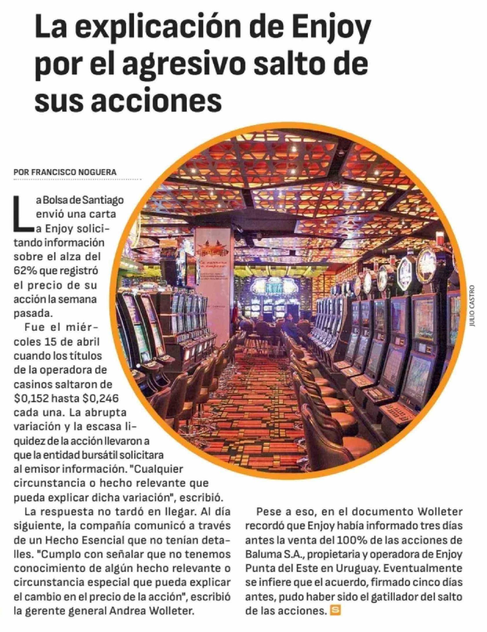La explicación de Enjoy por el agresivo salto de sus acciones 25-04-2026 Diario Financiero |