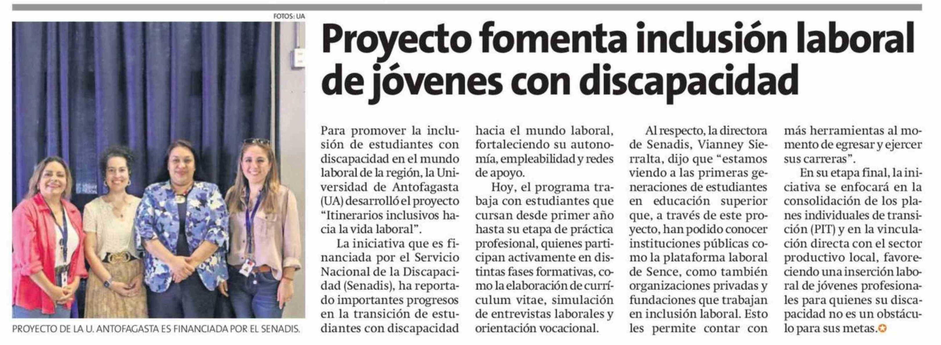 Título: Proyecto fomenta inclusión laboral de jóvenes con discapacidad