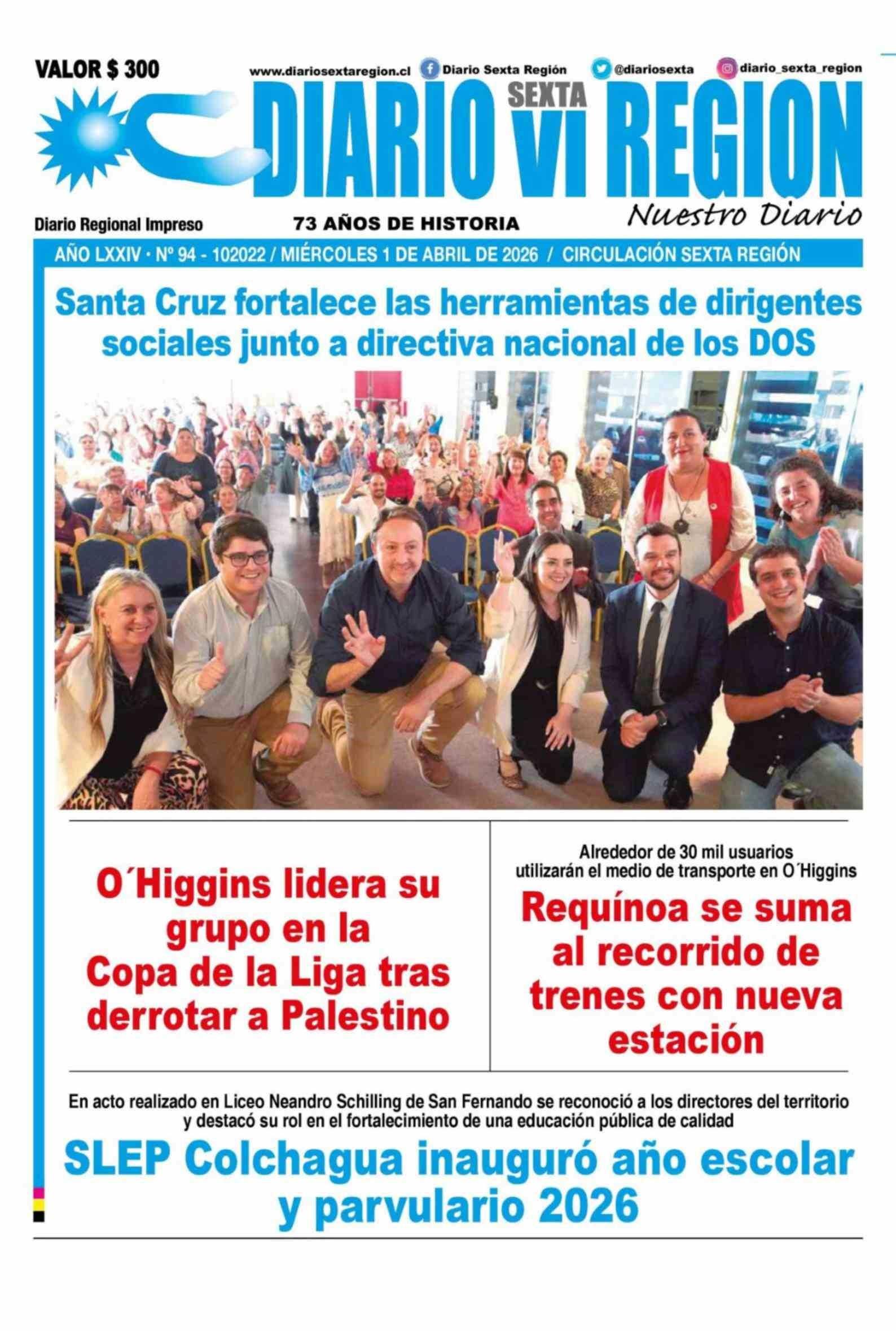 | Fecha: | 01-04-2026 | Sector: | Portada | Región: | Región del Libertador General Bernardo O'Higgins |