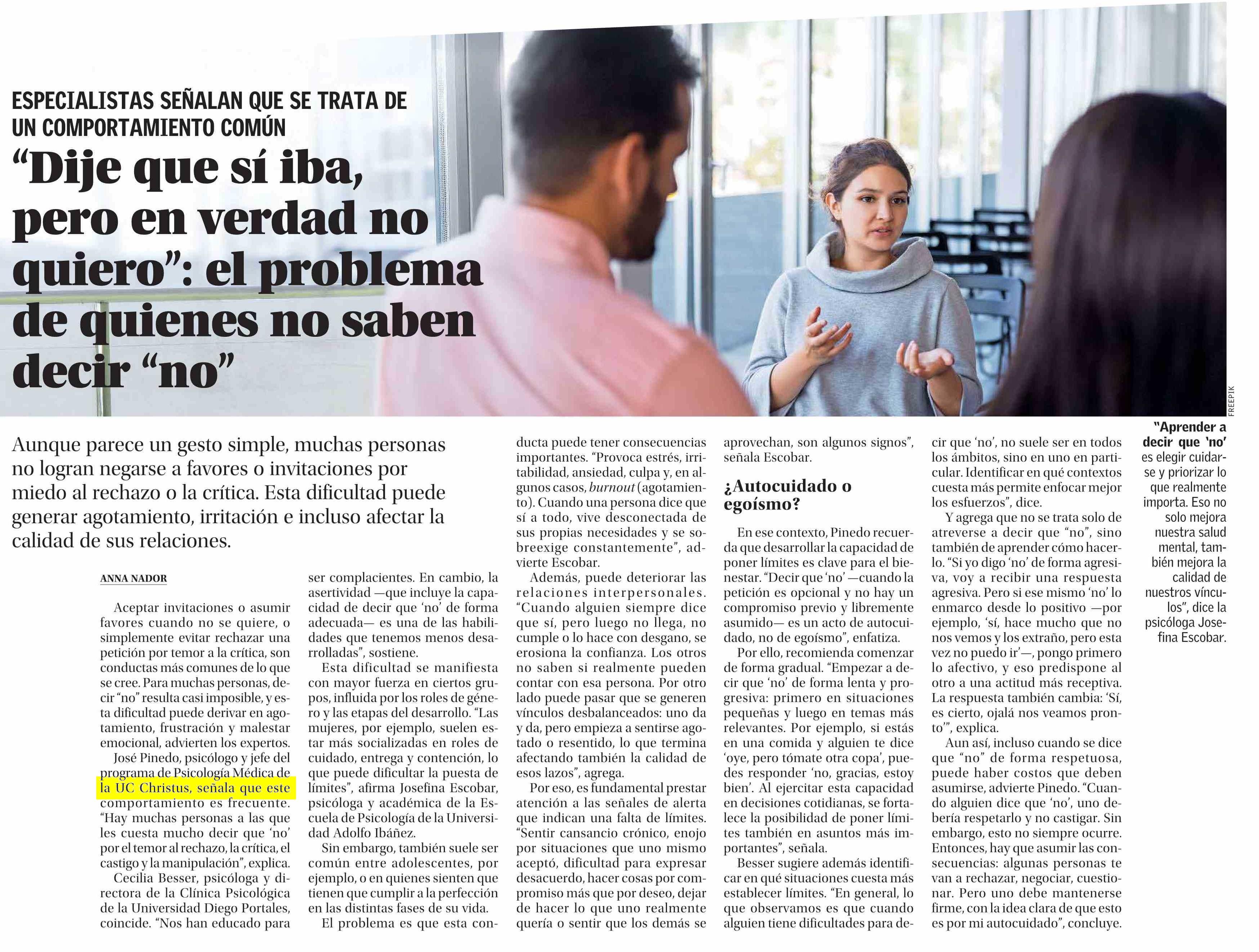 Título: “Dije que sí iba, pero en verdad no quiero”: el problema de quienes no saben decir “no”