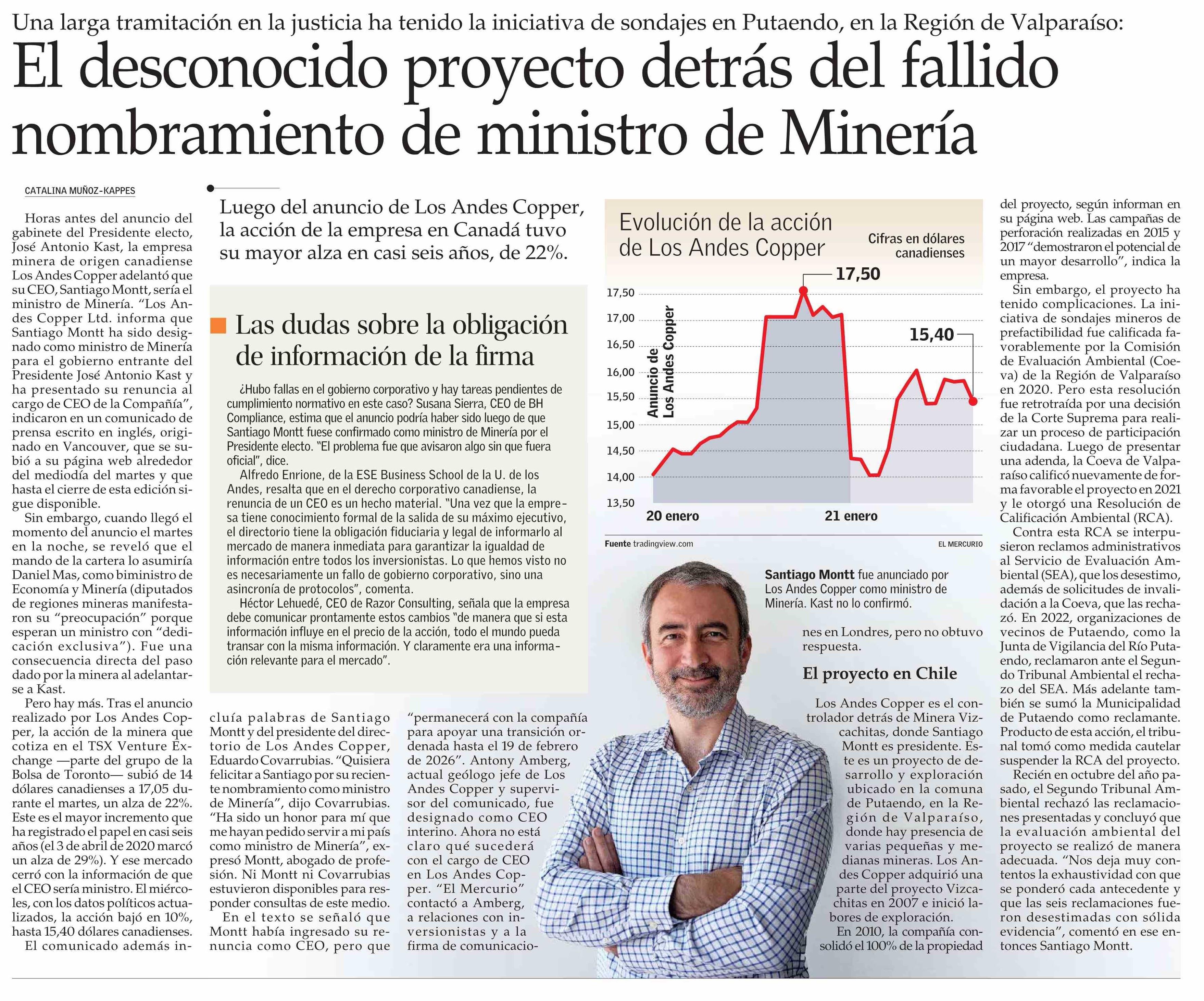 El desconocido proyecto detrás del fallido nombramiento de ministro de Minería 22-01-2026 El Mercurio |