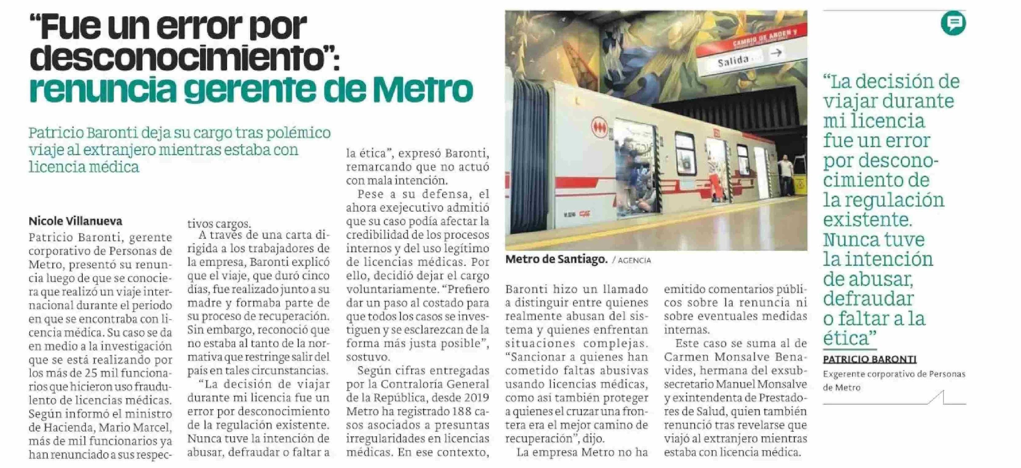 | Título: | “Fue un error por desconocimiento”: renuncia gerente de Metro |
