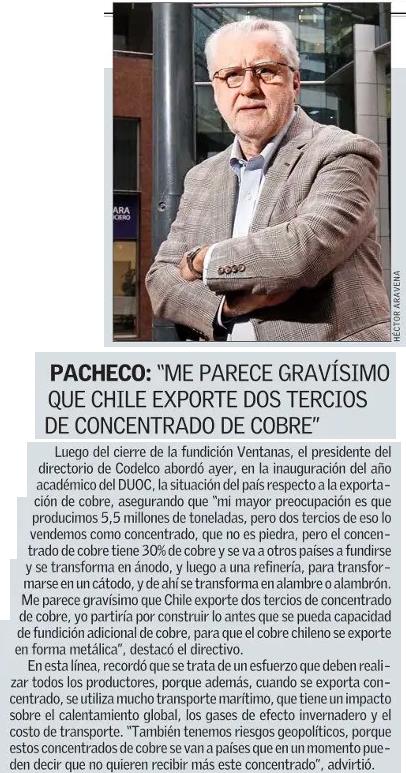 PACHECO: "ME PARECE GRAVÍSIMO QUE CHILE EXPORTE DOS TERCIOS DE CONCENTRADO DE COBRE” 05-04-2023 El Mercurio |