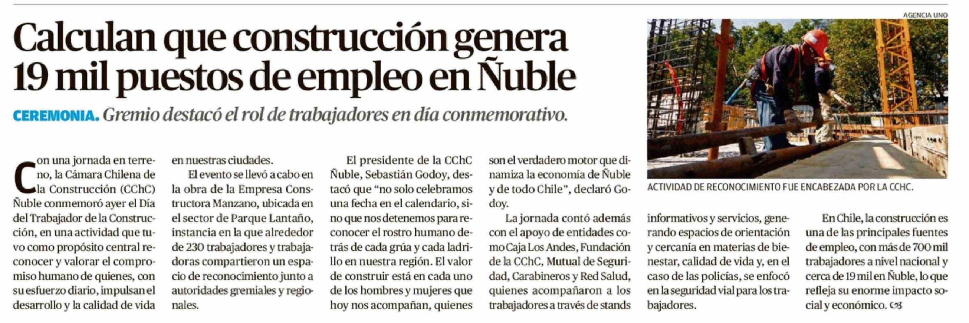 Calculan que construcción genera 19 mil puestos de empleo en Ñuble 27-03-2026 Crónica de Chillán |